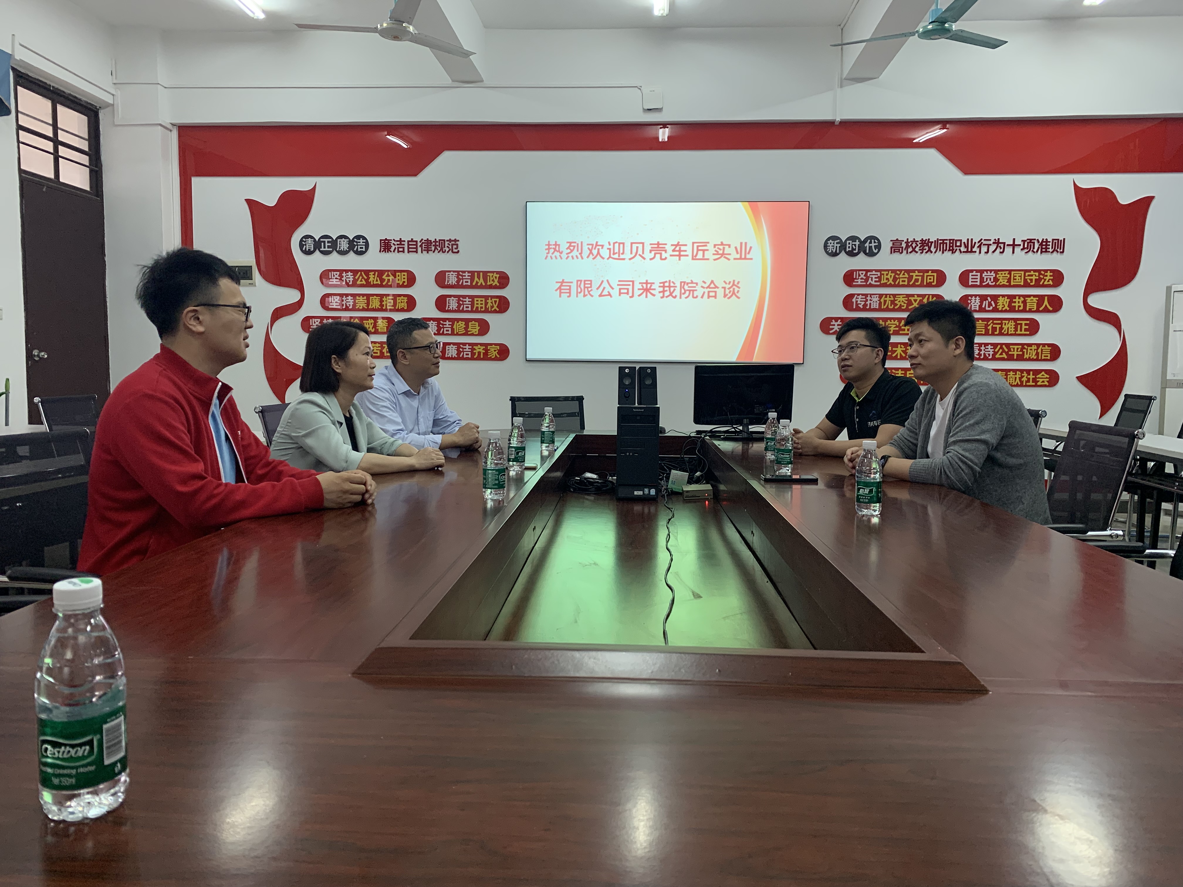 林胜勇、罗羽分别介绍贝壳车匠实业有限公司、韶关安正丰田汽车销售服务有限公司的基本情况,并表示企业和学院可将从学生实习就业、校企联合培养等方面深度合作。