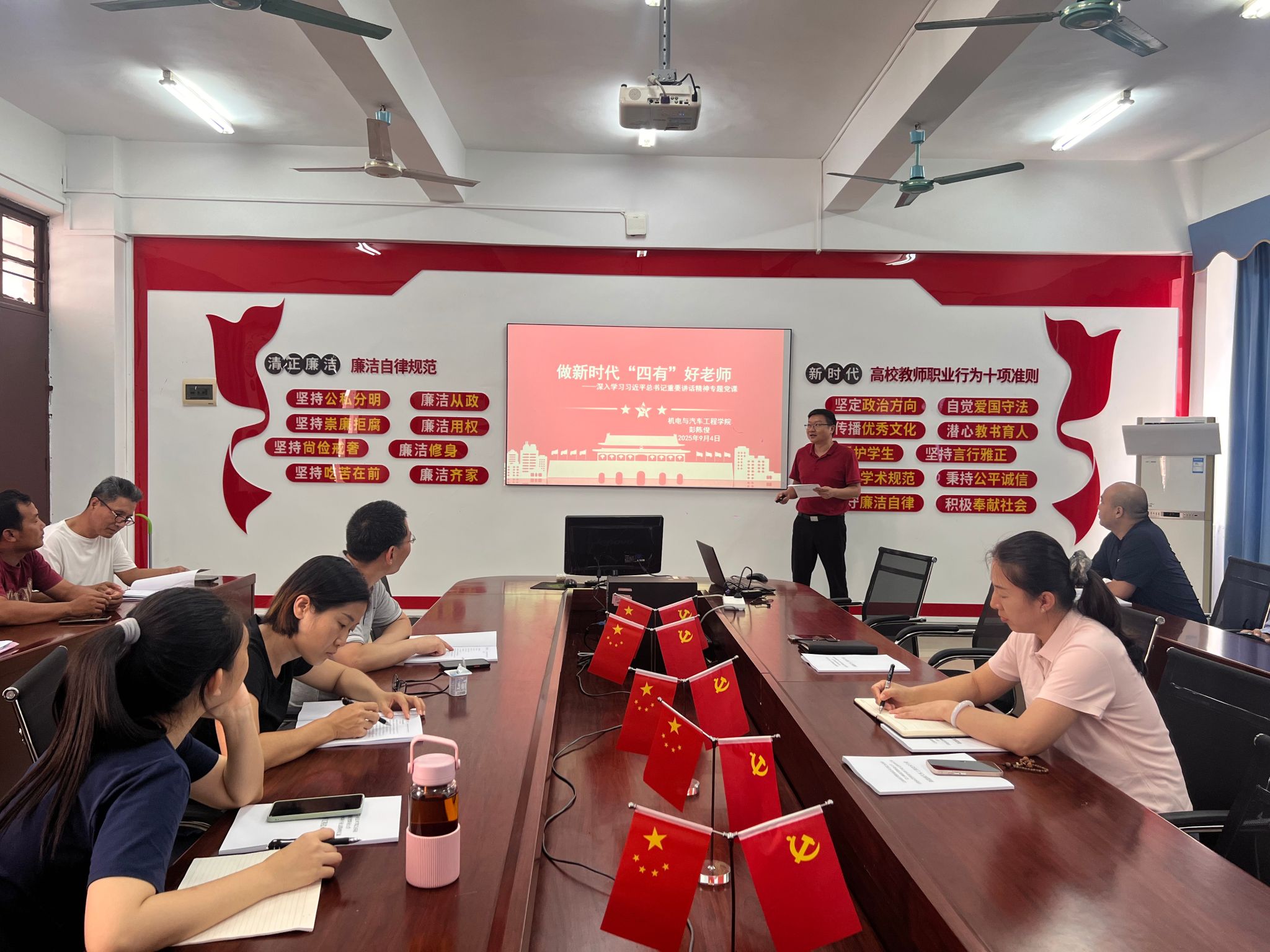 2025年9 月 4 日,beats365亚洲版官网党总支开展深入学习习近平总书记重要讲话精神专题党课;做新时代“四有”好老师、加强教师队伍建设专题党课活动,党课由学院党总支书记彭陈俊主持。