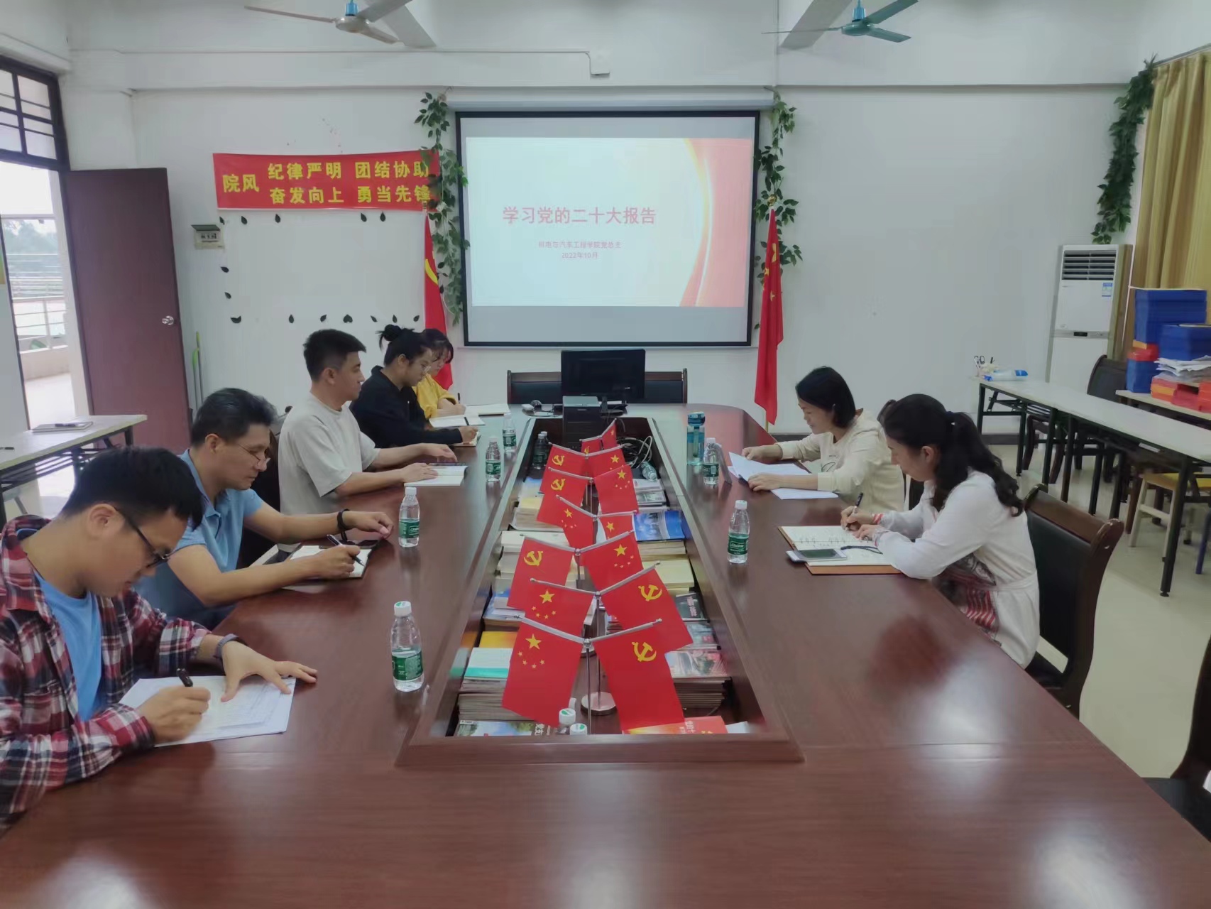 10月24日,beats365亚洲版官网党总支召开线上线下专题会议传达学习党的二十大精神 ,深刻领悟党的二十大精神,研究学习贯彻落实措施,学院全体党员参加,学院党总支书记黄邦姬领学党的二十大精髓,各个党员纷纷做学习分享和发言。