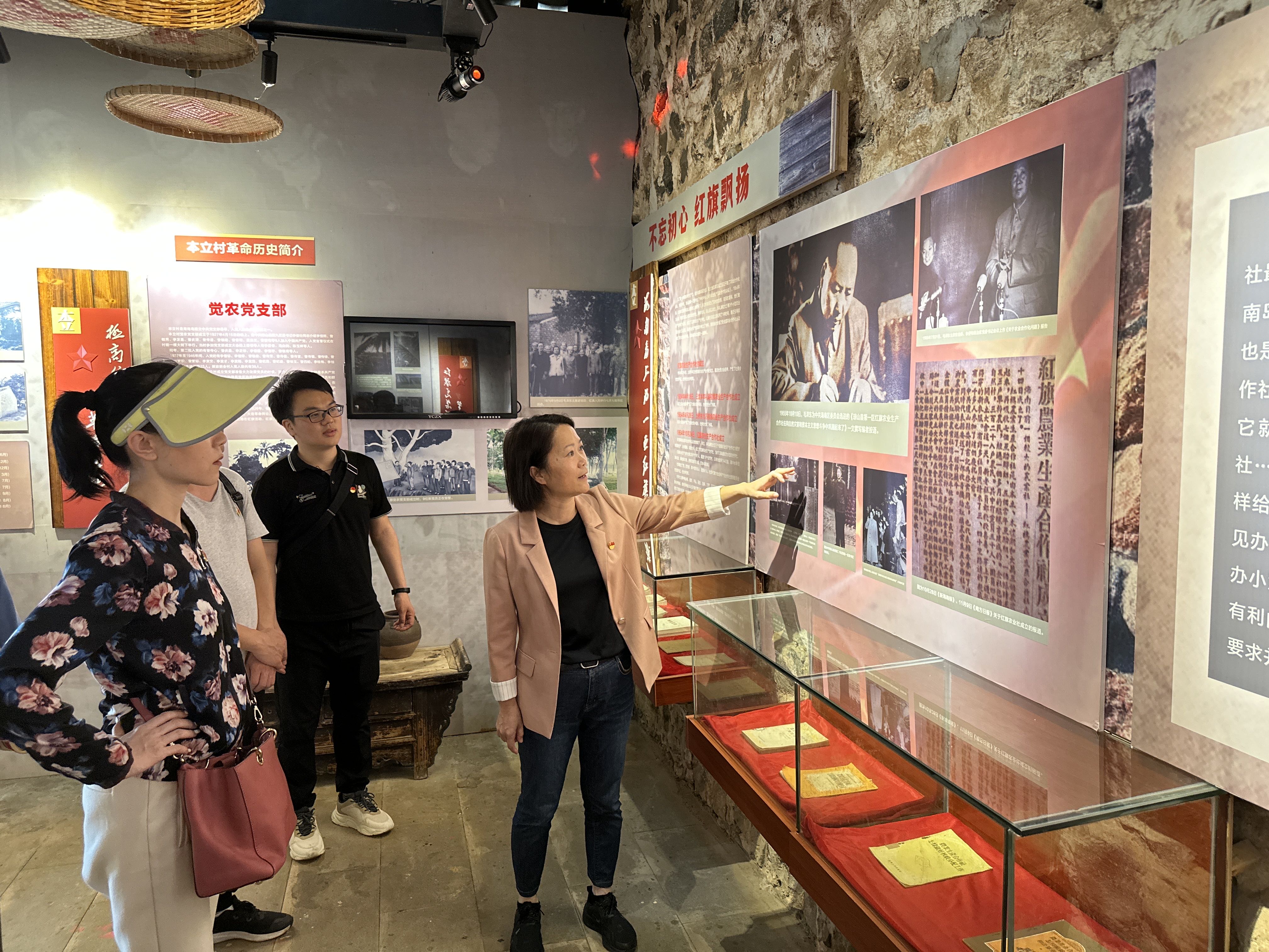 当天下午,一行人来到红旗镇本立村,在参观由红旗合作社旧址改建而来的历史文化陈列室过程中,黄邦姬书记为大家详细讲解了海南建设社会主义新农村的发展轨迹,使得大家切身感受到自贸港建设背景下海南新农村建设所带来的变革,相互交流了对中国特色社会主义新时代发展变化的真实看法和真切感受。