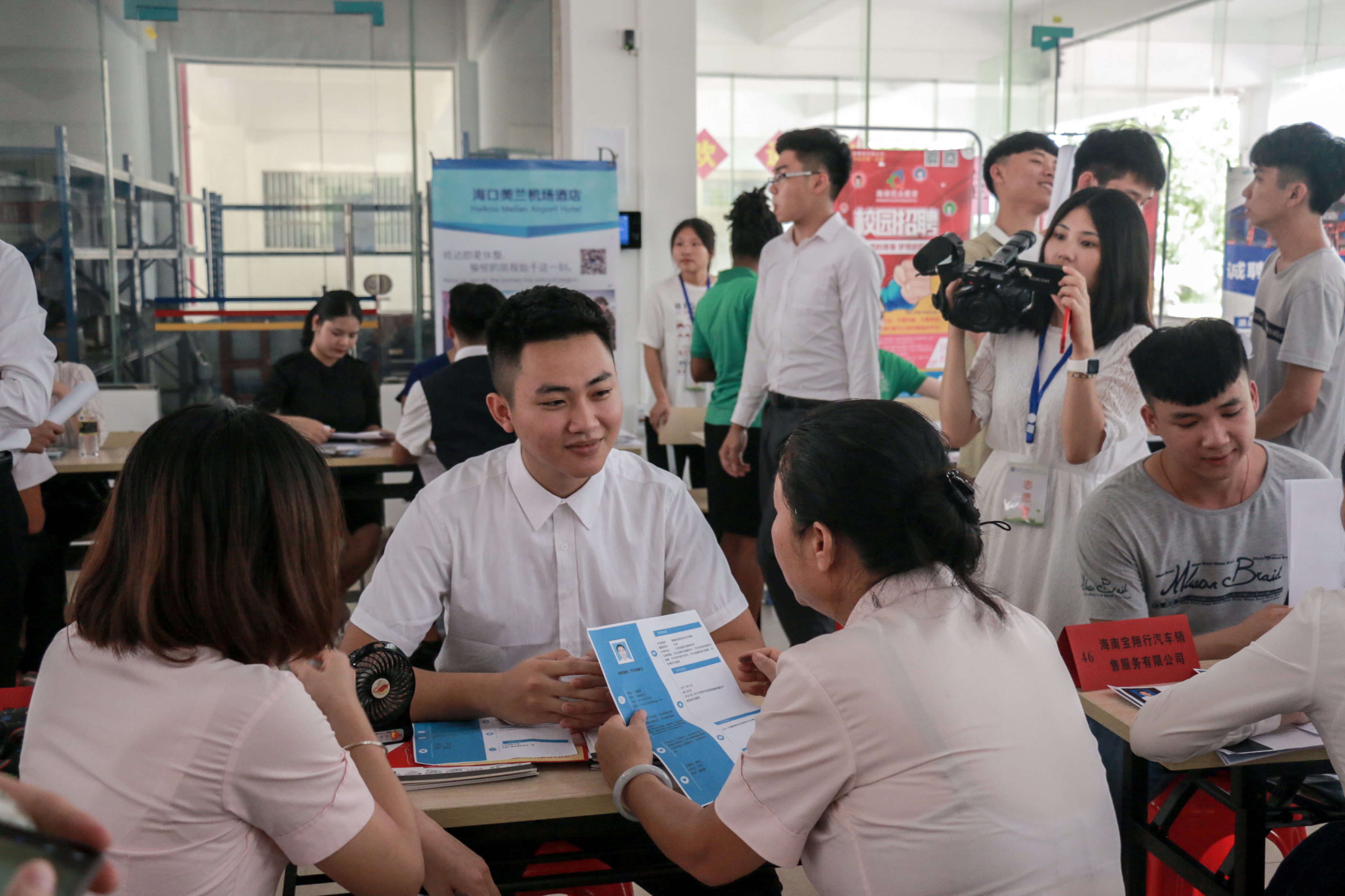 本次招聘会共邀请了海南威特电气集团有限公司、华胜德系豪车专修连锁公司、海南石屹科技有限公司、海南宝悦汽车服务有限公司、海口鲁能希尔顿酒店等46余家企业参会,提供有效就业岗位300余个。据统计,本次招聘会上招聘单位共收到毕业生投递简历500余份,有100余人与企业达成初步就业意向。