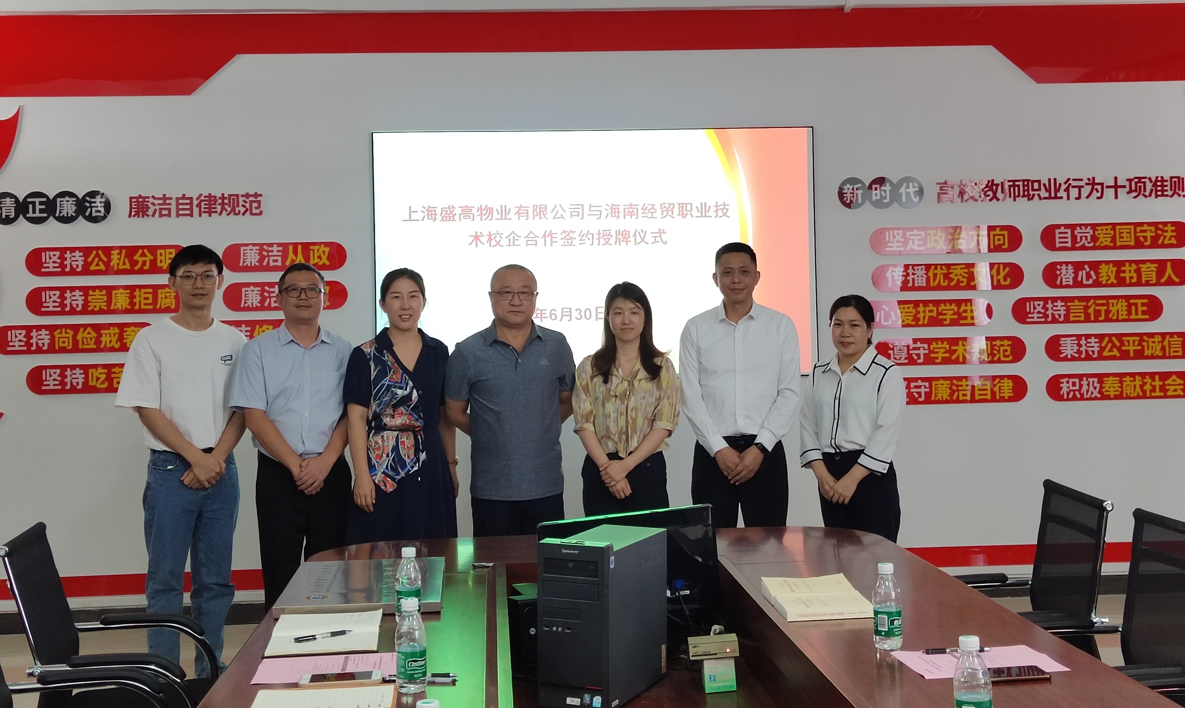 2023年6月30日,beats365亚洲版官网与上海盛高物业服务有限公司海口分公司在2-406会议室成功举办合作签约授牌仪式,公司人力中心总监季雪、南宁中心城市总经理徐敏智、学院院长张克明、副院长白有俊、副院长马艳花及相关人员出席签约仪式。