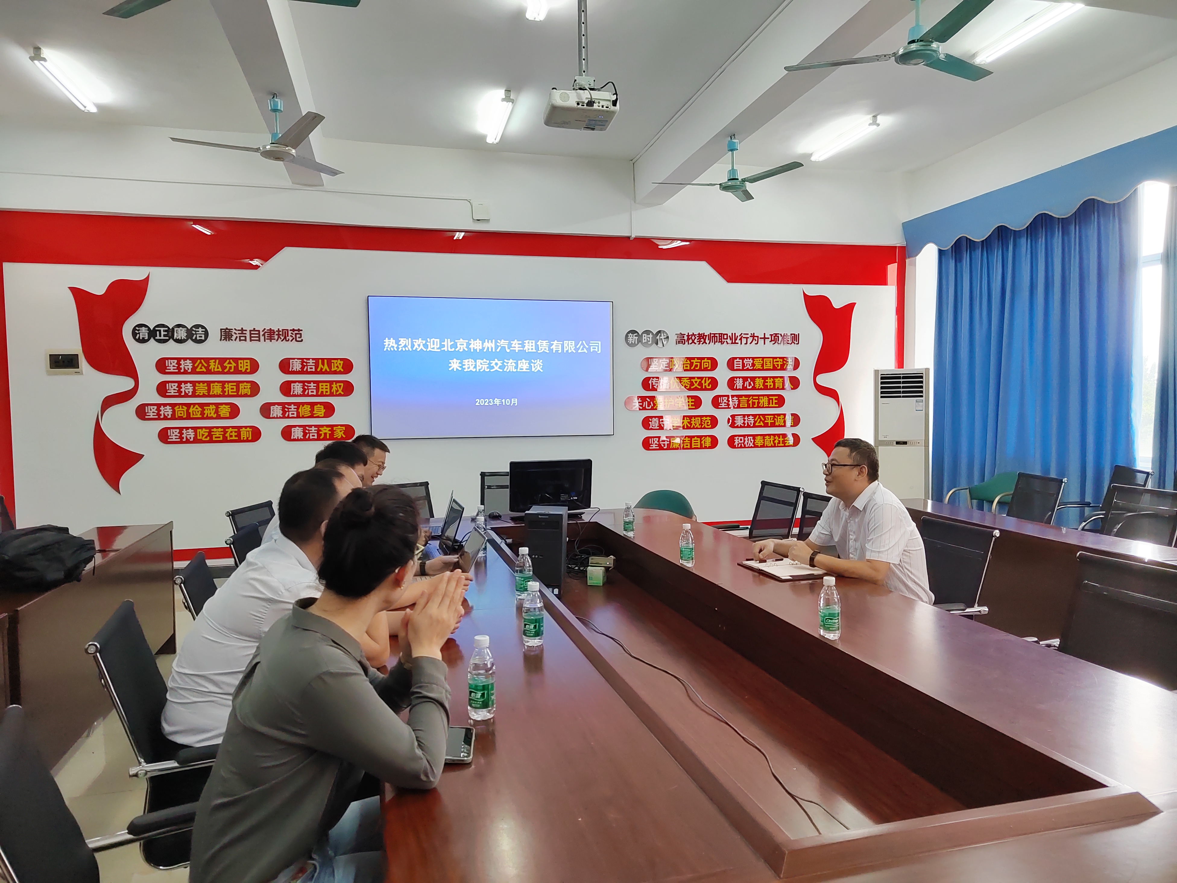 洽谈会上,白有俊副院长先介绍了学校情况,又介绍了beats365亚洲版官网新能源汽车技术专业和汽车检测与维修技术专业招生、就业、人才培养等情况。牛伟帅总监就公司情况进行了介绍,提出神州租车在海南的业务量大、需 要大量的高素质高技能人才满足海南及全国业务需求;维修部负责人郁朝阳、维修培训负责人陶争、二手车车况品牌负责人许家乐、人力资源部负责人裴珊珊分别从分管业务人才需求进行了解说。