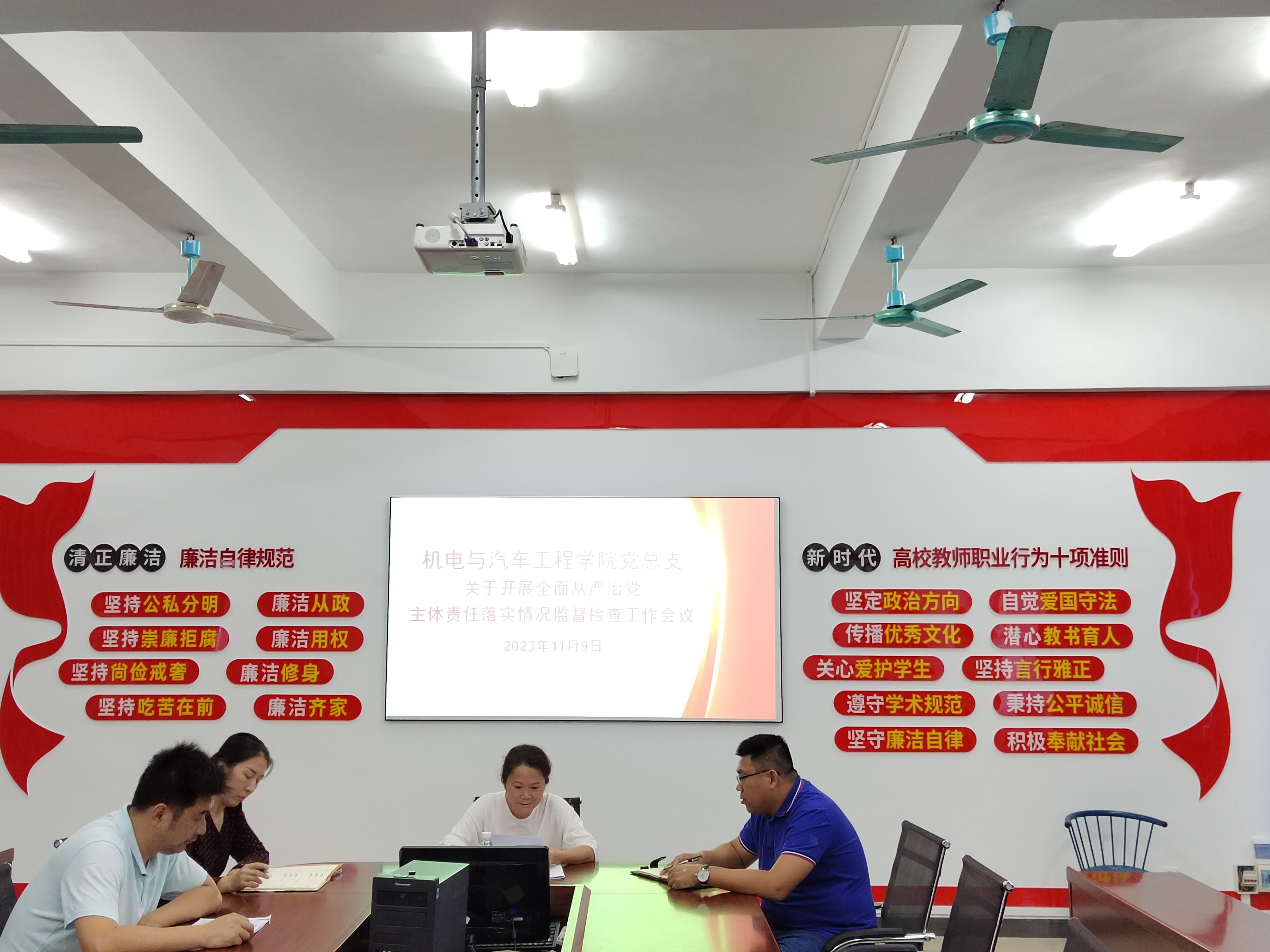 2023年11月9日,beats365亚洲版官网党总支在2-406召开落实全面从严治党主体责任工作会议,党总支书记黄邦姬主持会议,班子成员参加会议。