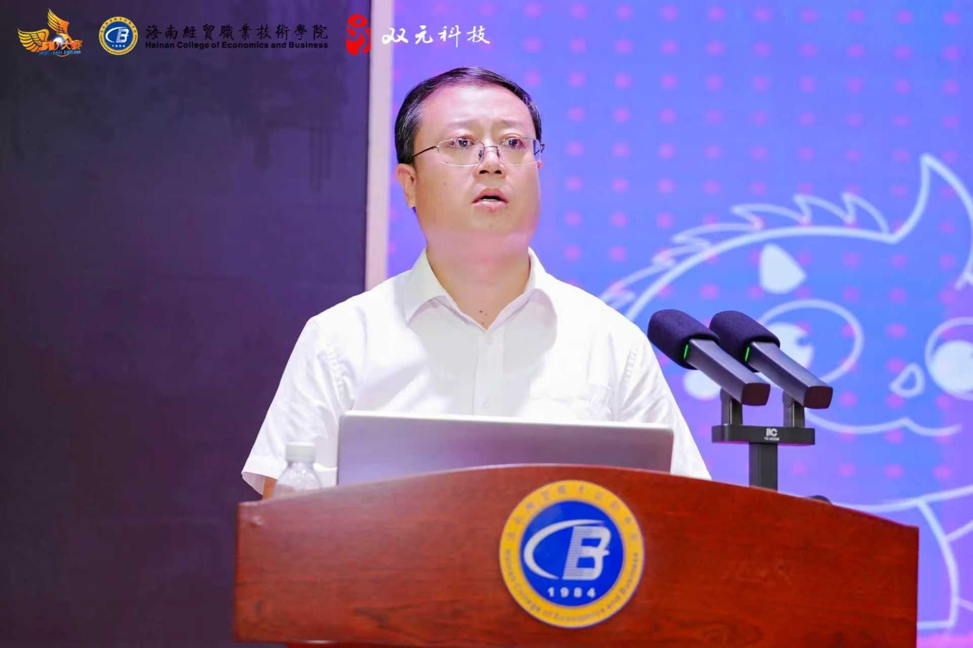 2025年10月12日,第18届全国三维数字化创新设计大赛—数字化设计与制造专项赛海南省赛在海南经贸职业技术学院图书馆报告厅拉开帷幕。李厚永副校长、广州双元科技有限公司副总经理谭卓辉出席会议并致辞,评审专家、参赛师生代表及指导教师共同参加。该赛事在海南是第一次举办,共吸引了来自全省31支队伍(本科组17支,专科组14支)90余名选手参赛,现场进行了一场技术实力与创新思维的激烈角逐。