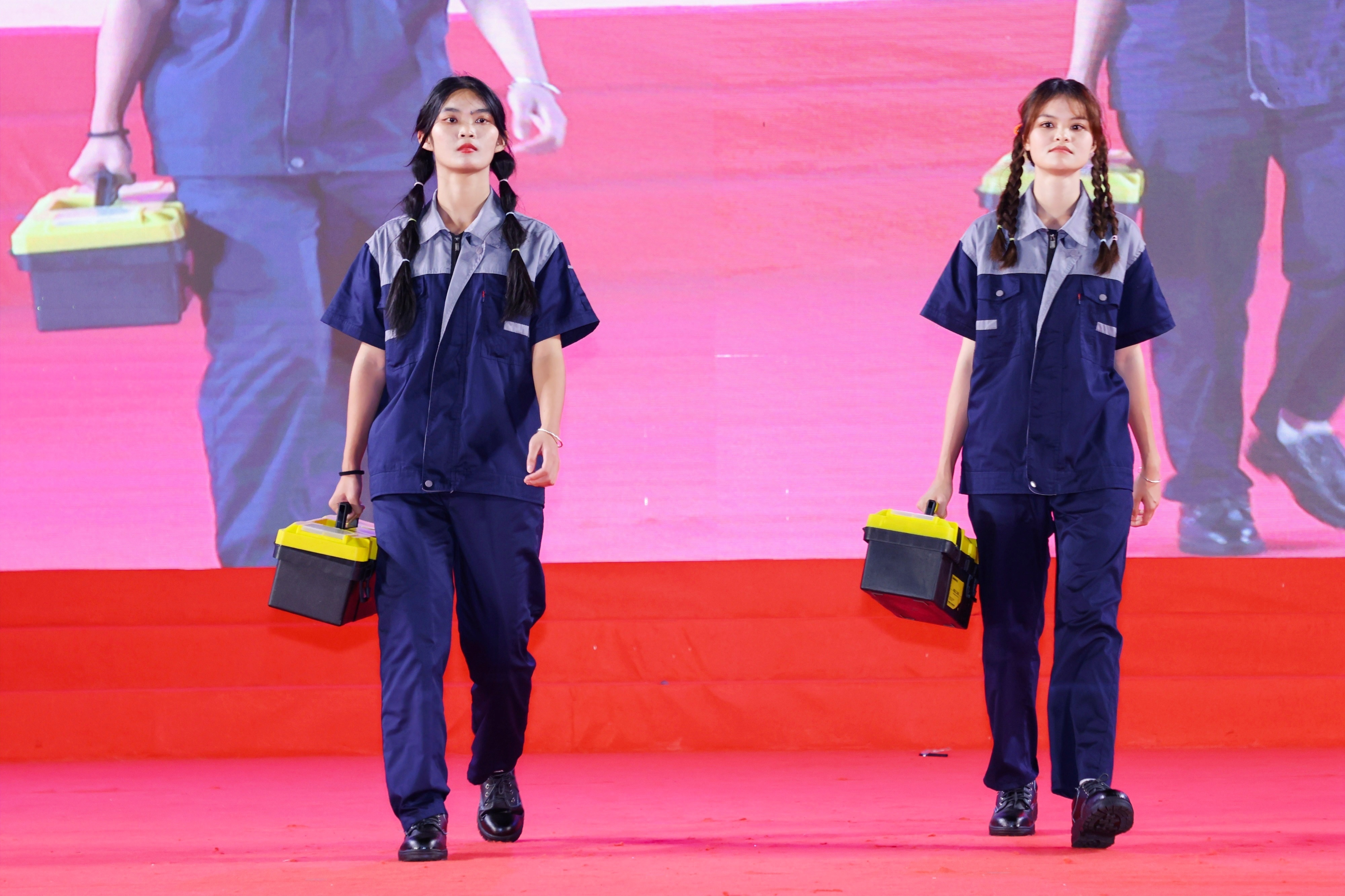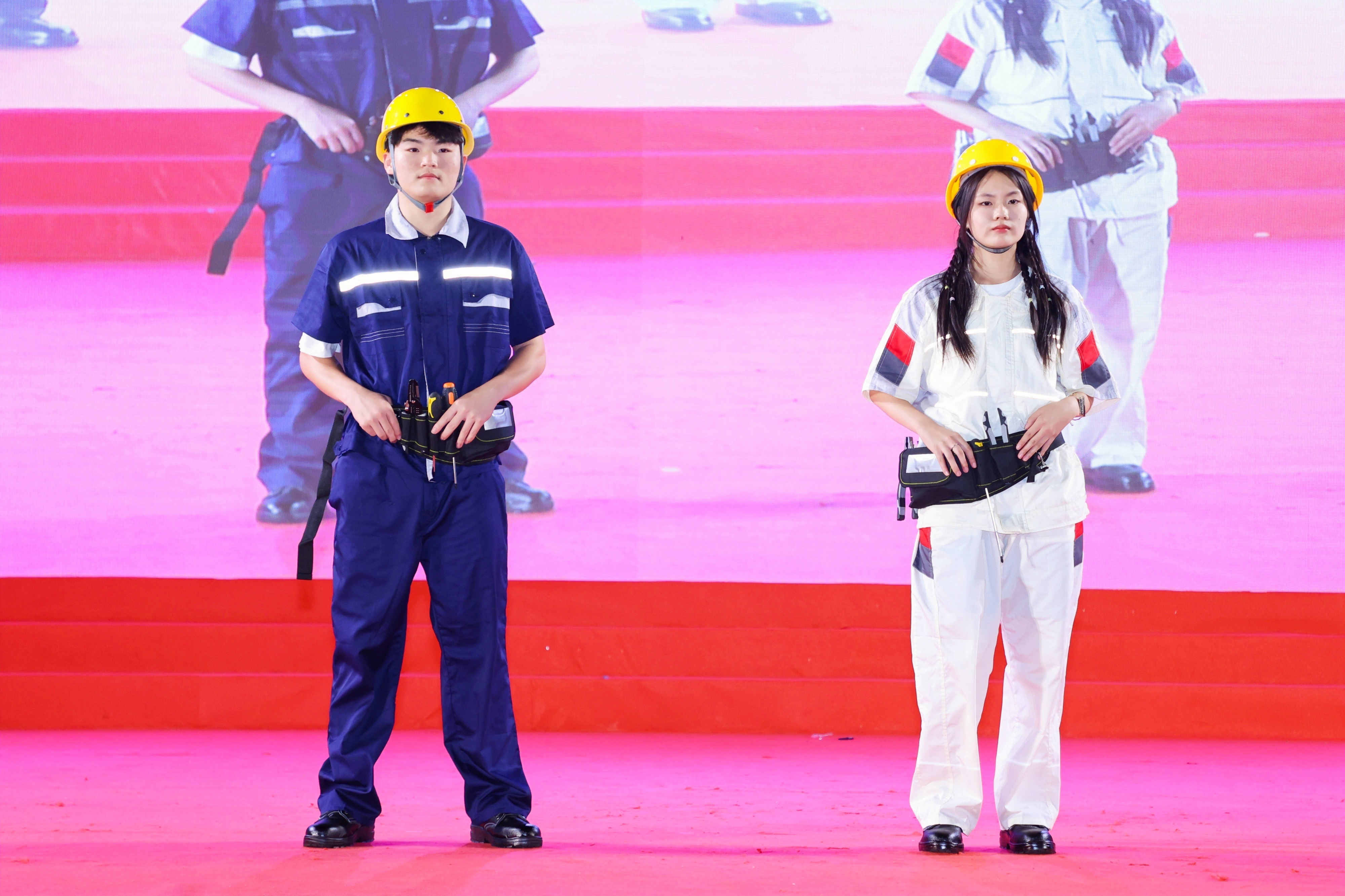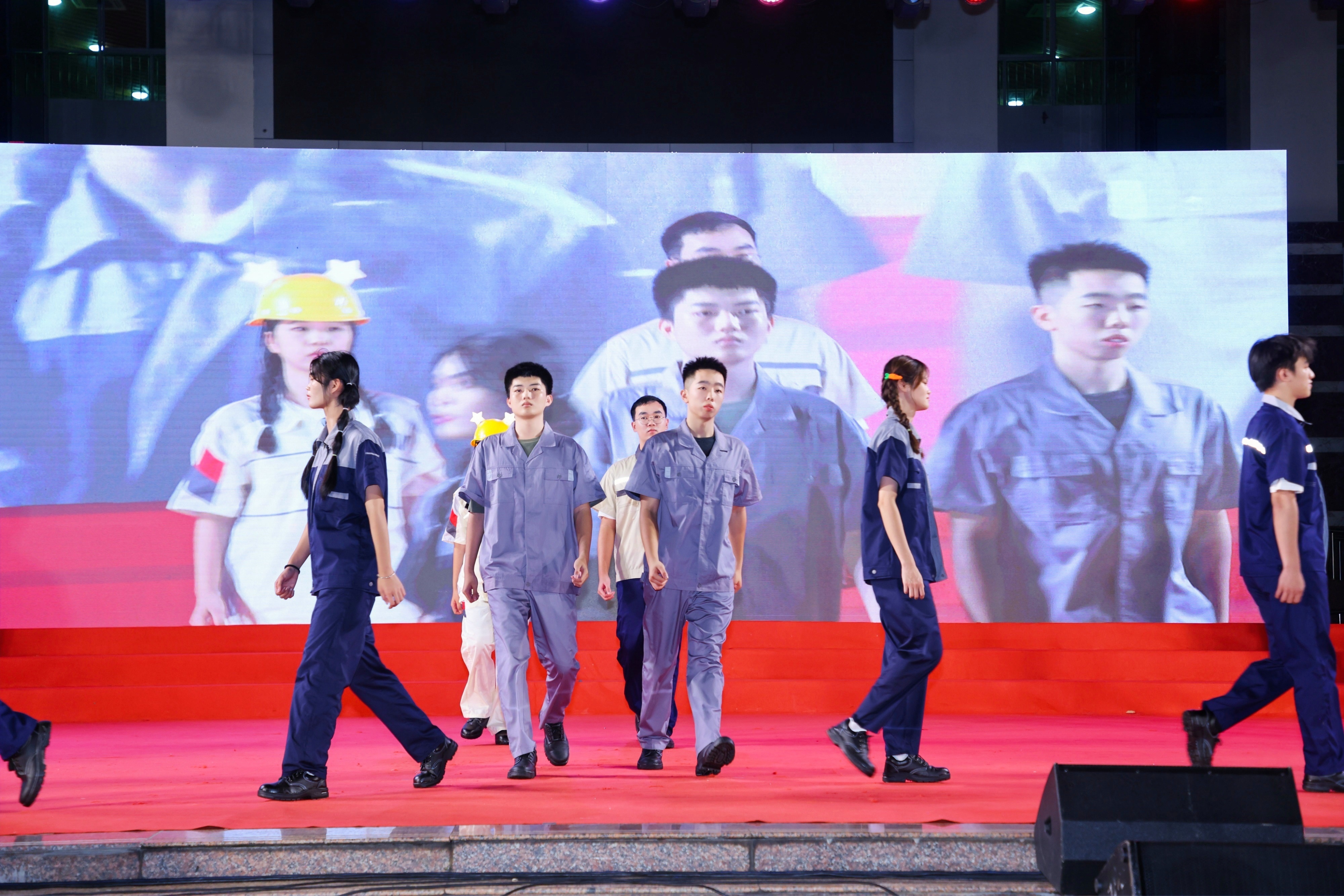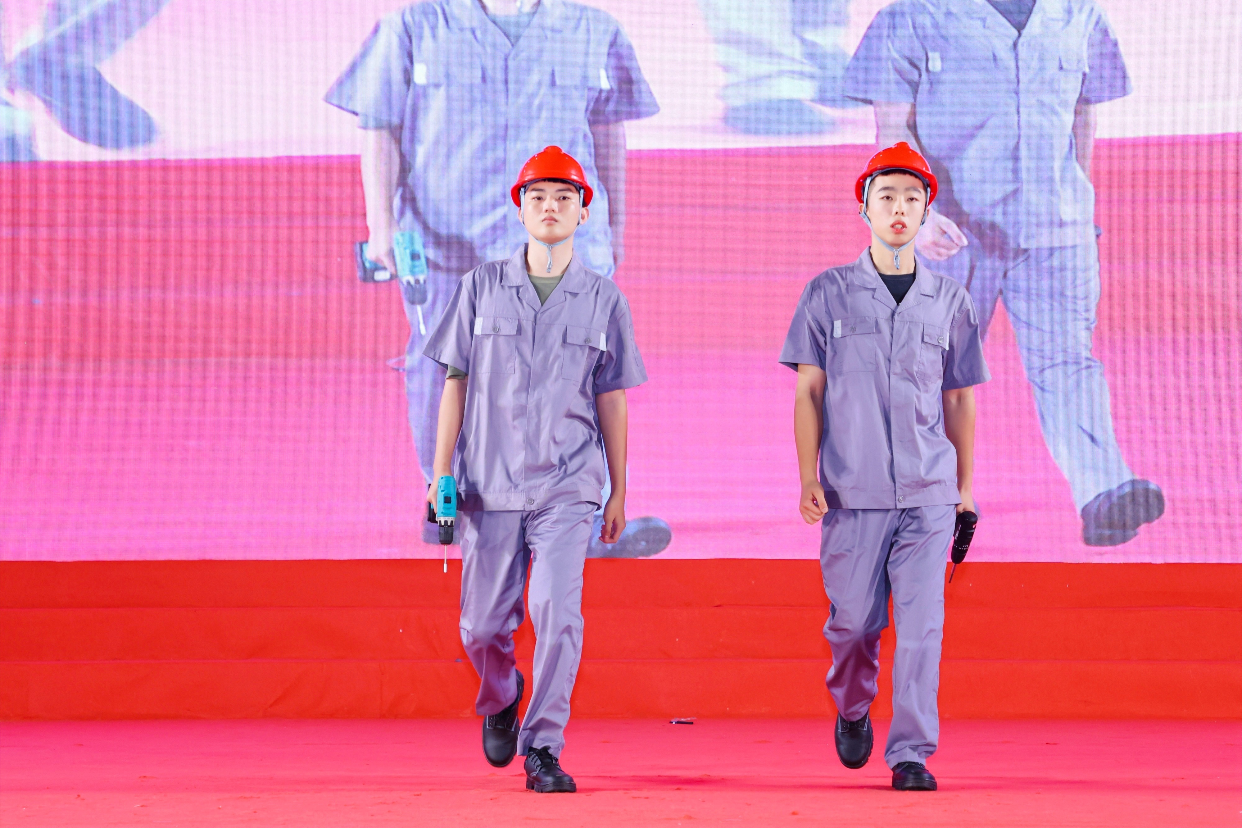 在创新内容展示环节,14人的创意走秀团队伴随着动感的音乐,身着机电行业特色工装工鞋,手持具有代表性的工具、护具,甫一登场便牢牢地抓住了评委及观众的目光,共三轮的展示环节过程中喝彩、欢呼不绝于耳,充分的展示了beats365亚洲版官网的专业特色。在随后的礼仪操规定动作表演中,我院代表队队列整齐、步伐有力登上舞台,参赛同学们以端庄的仪态,优雅的举止,得体的手势,从整理着装、微笑点头再到引领示意等方面进行了全方位标准化展示,赢得了各评委老师的充分肯定。