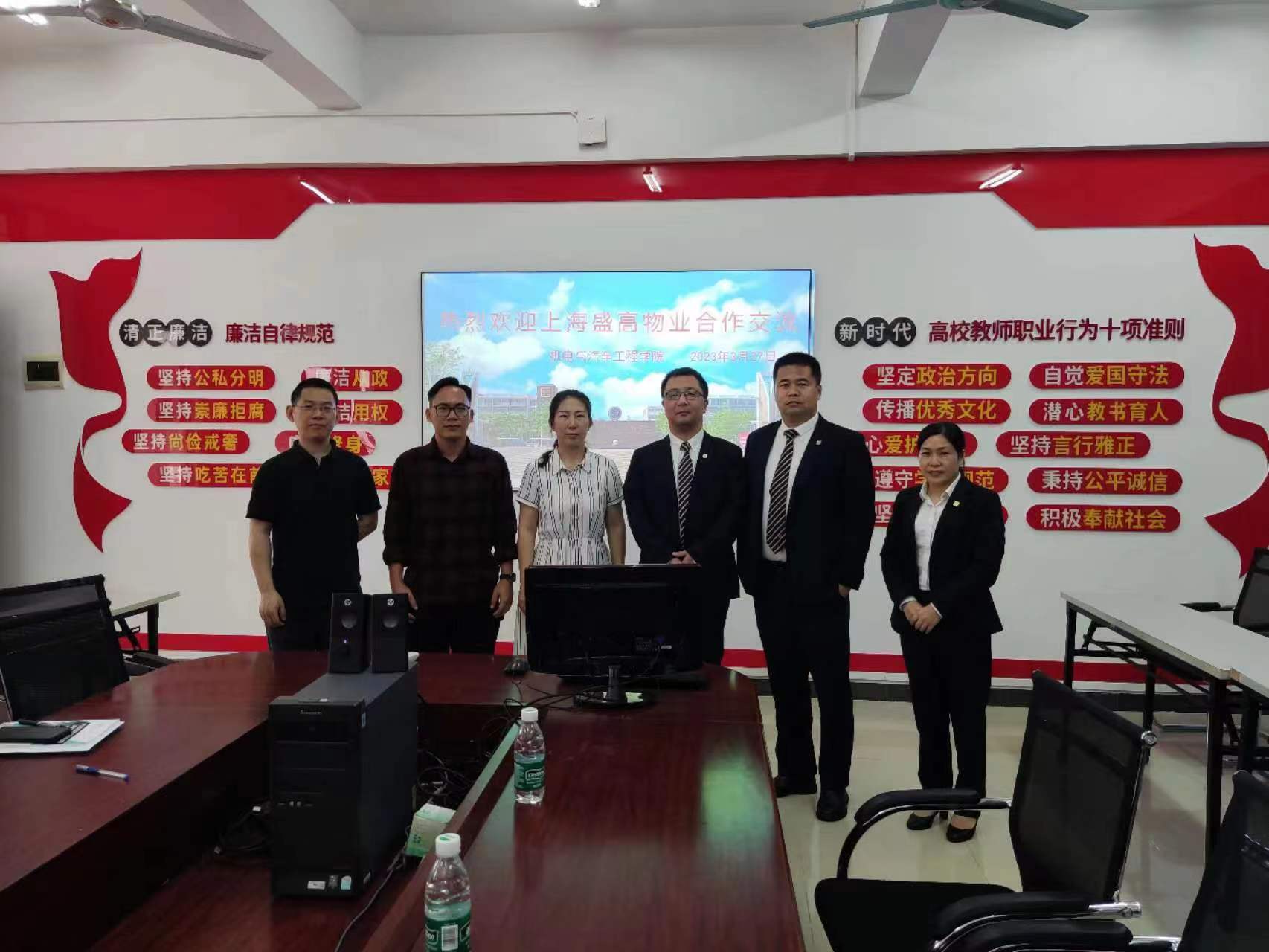 2023年3月27日上午,上海盛高物业服务有限公司与我院在2教406会议室洽谈校企合作事宜,会上王经理郑重的介绍了上海盛高物业服务有限公司的企业规模、管理设施、晋升空间及合作模式等情况。