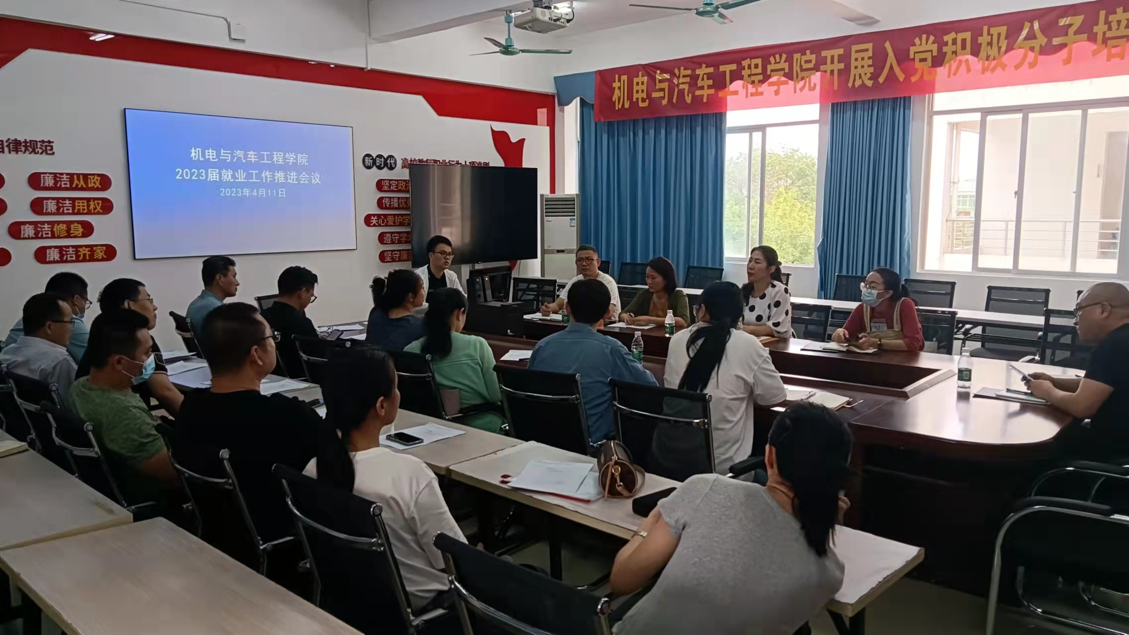 2023年4月11日下午,学院在2-406召开就业工作推进会。党总支书记黄邦姬,学院院长张克明,副院长马艳花、白有俊出席会议并做就业工作推进指导。