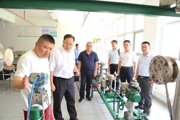 在刘进军等人的陪同下,张继友、崔昌华一行参观该公司电气专业培训基地。