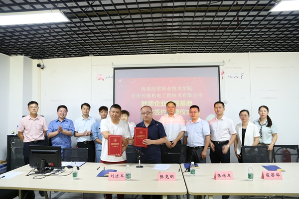 2022年5月26日,海南经贸职业技术学院与岳阳长炼机电工程有限公司洋浦分公司举行“双师型”教师培养培训基地和就业实习实践基地签约揭牌仪式。海南经贸职业技术学党委书记张继友、党委副书记崔昌华,岳阳长炼机电工程有限公司洋浦分公司总经理刘进军、财务总监、总经理助理陈佳兴出席揭牌仪式。陈佳兴主持仪式。