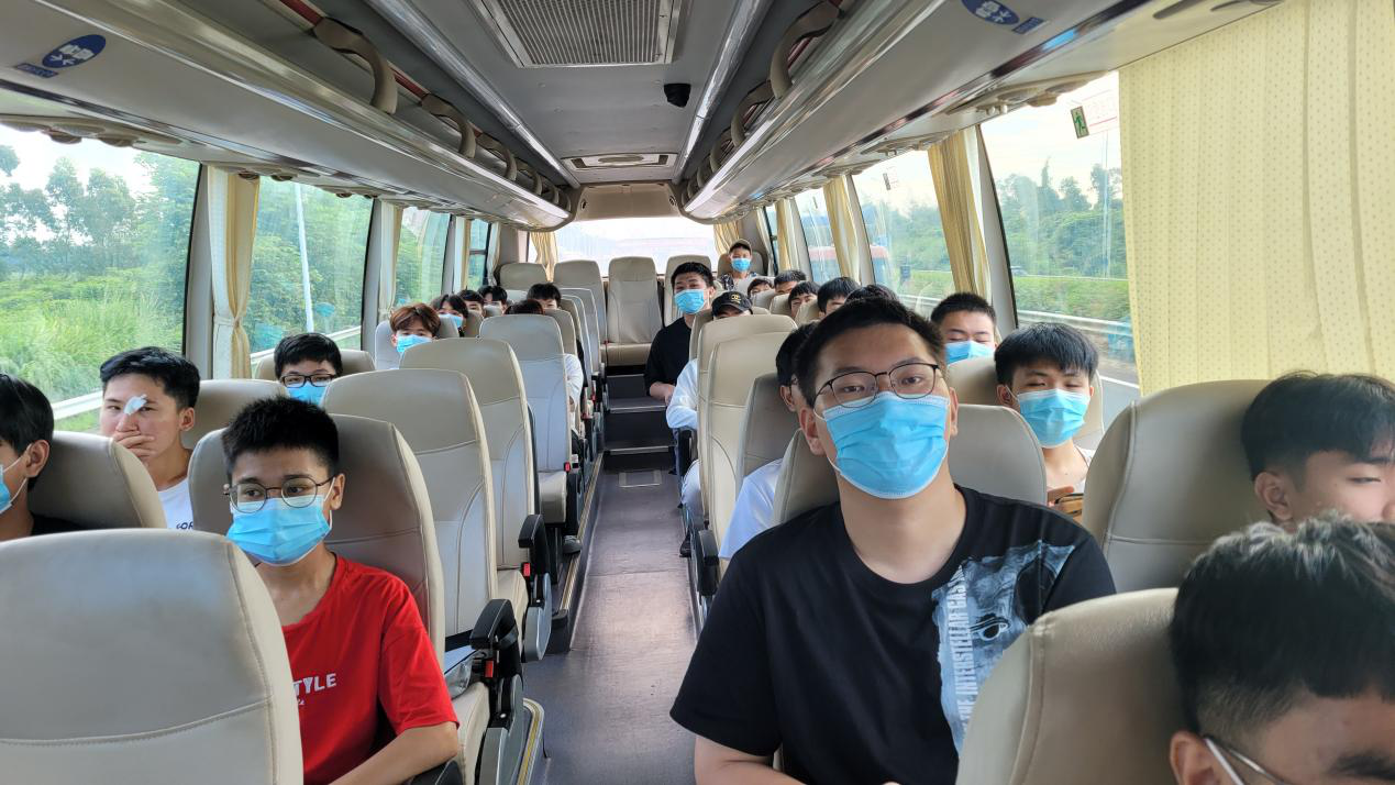 同学们乘坐大巴赴合作企业进行实践教学