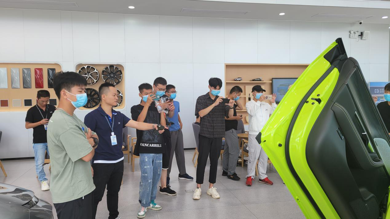 同学们在小鹏汽车展厅合影