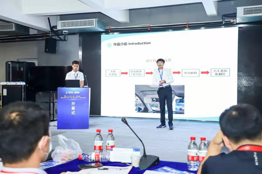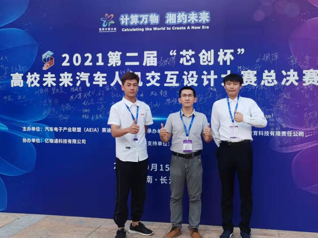 第二届“芯创杯”高校未来汽车人机交互设计大赛大赛旨在培养和挖掘更多的创新型人才,促进相关学科的跨界协作与融合,唤起产学研三方,对未来汽车人机交互和智能化设计的重视,加快推进国内汽车产业进一步高质量发展。大赛于2021年3月正式启动,截止到7月1日高校海选和作品提交阶段正式结束。本次大赛共有包括985/211重点高校、普通本科高校及高职高专院校在内的300余所高校积极参与,近800支赛队注册参赛。大赛自2021年3月正式启动后,经过高校海选和预赛选拔,最终甄选出60件优秀作品,成功入围“2021世界计算大会”上举办的“芯创杯”大赛总决赛。9月16日,来自全国不同高校的60支入围参赛队伍齐聚湖南大学设计艺术学院。本届“芯创杯”大赛总决赛参赛队分为了本科院校组和高职院校组,以现场答辩形式,通过线上线下展开了激烈角逐。最终,海经贸超越团队所设计的《汽车遮阳板自动翻转的控制》作品获得大赛铜奖(第三名)的佳绩。