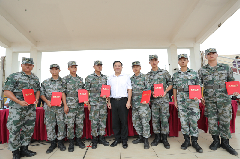 黄景贵院长代表学校向承训部队赠送“威武之师展风采、情系经贸育英才”锦旗,感谢教官们给予学校新生的军训帮扶,并为17位教官颁发“优秀教官”奖。
