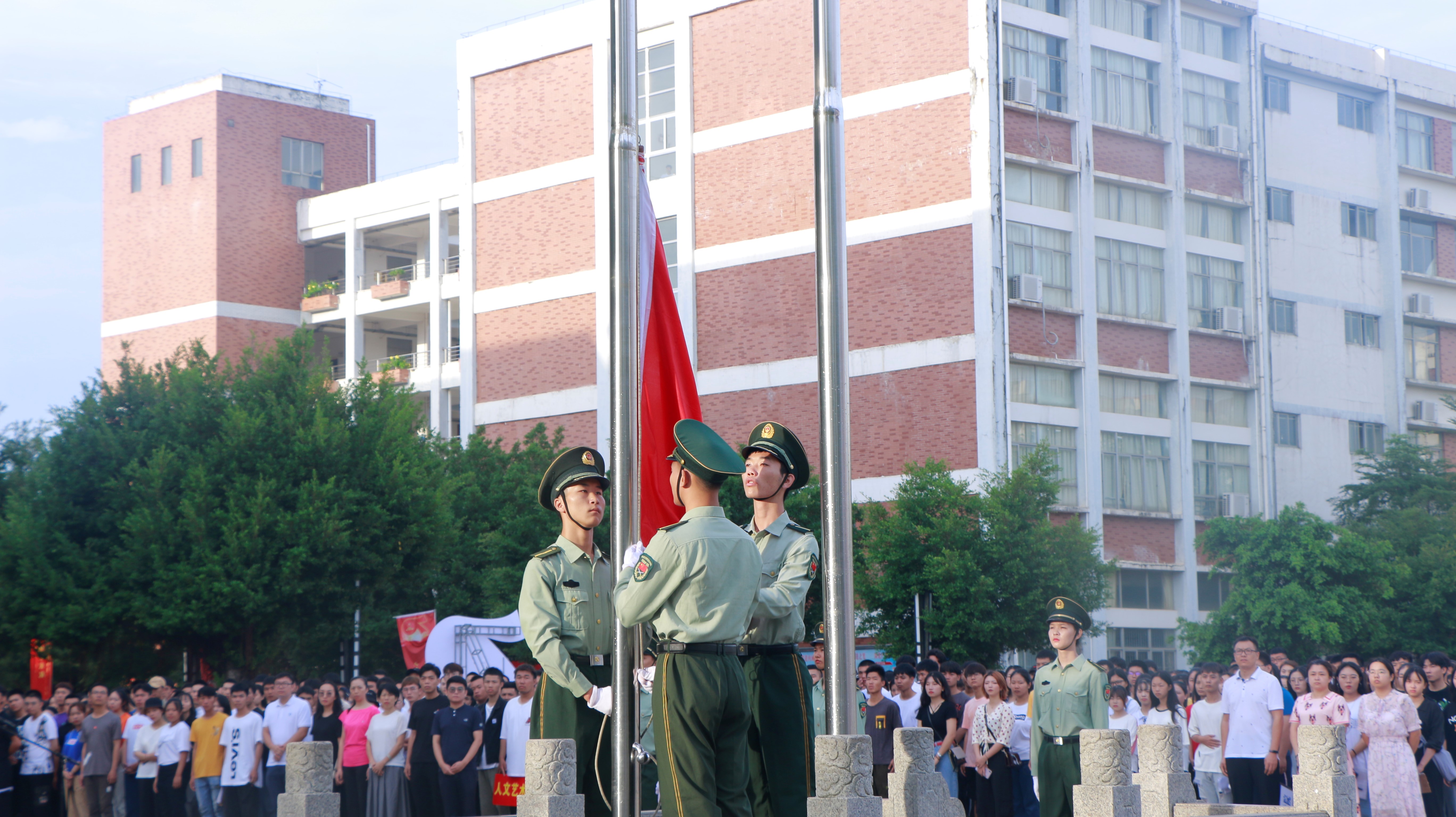 2019年10月9日讯(青年媒体中心报道),为庆祝建党98周年,喜迎祖国70华诞,激发全体师生的民族自豪感、历史责任感和爱国热情,10月8日,我校全体19届师生在经贸广场举行了以“不忘初心,牢记使命”为主题的升旗仪式。