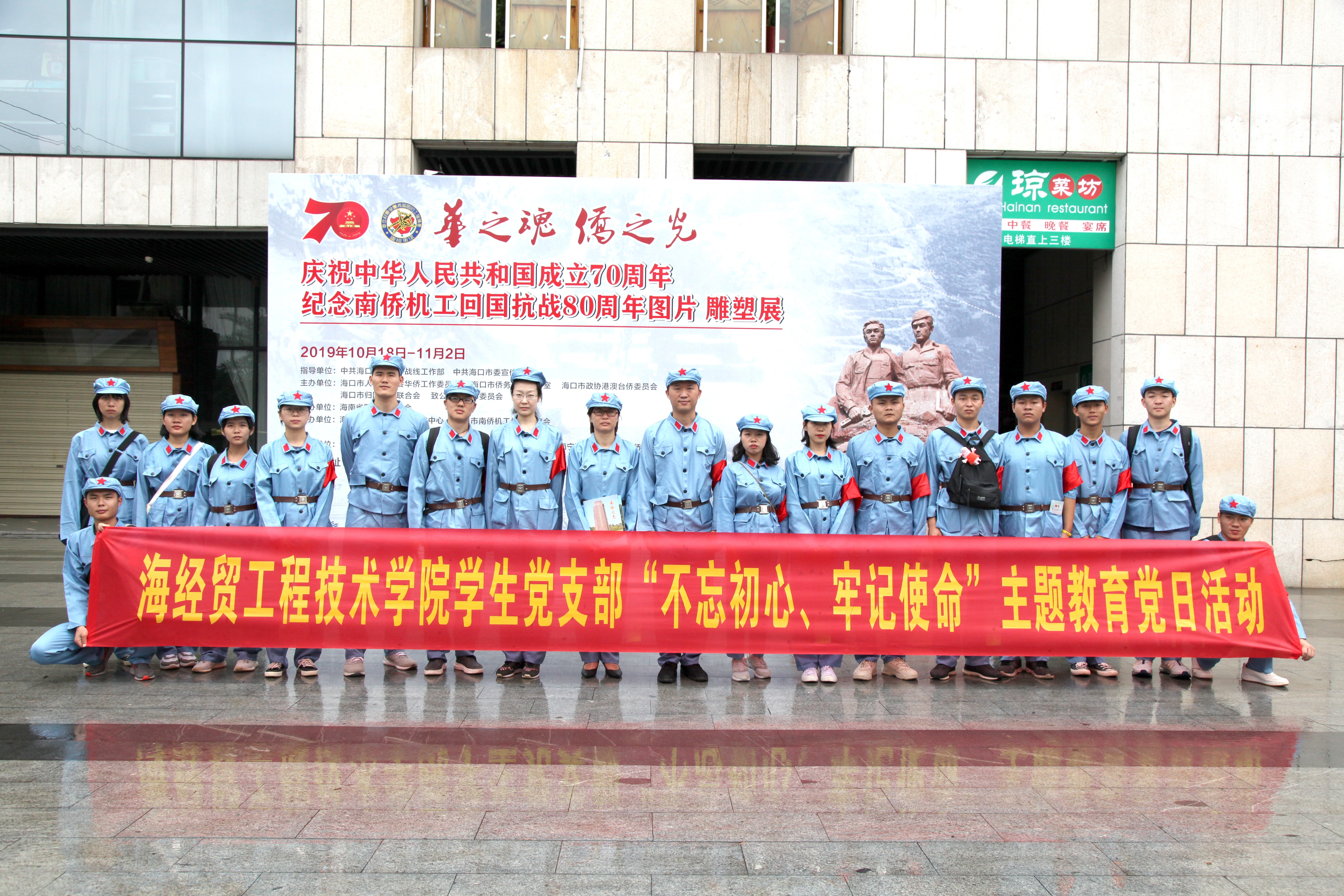 2019年11月2号(院青年媒体中心报道)讯,为庆祝新中国成立70周年,深入了解海南发展的光辉历程和辉煌成就,11月1日上午,工程技术学院学生党支部全体党员、班主任代表和学生代表共同前往省博物馆展厅参观“奋斗新时代、美好新海南”庆祝中华人民共和国成立七十周年海南发展成就展,前往骑楼老街参观“纪念南洋华侨机工回国抗战80周年图片、雕塑展”。
