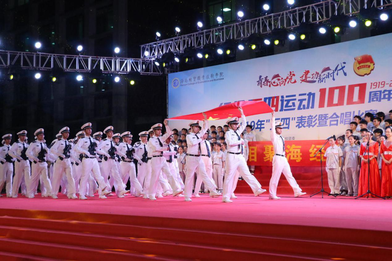 2019年5月7日讯(青年媒体中心报道)为弘扬爱国精神,重温红色经典;增强班级凝聚力,丰富校园文化生活,我院于5月7日晚上7点整参加学校在经贸广场隆重举行的“不忘初心跟党走,青春建功新时代”五四大合唱比赛。本次大合唱是对大学新生进行爱国主义、集体主义和民族精神的生动教育。我院领导和辅导员老师高度重视,悉心指导,18级新生人人参与,利用课余时间精心准备,积极练唱,展现了工程技术学院青年学生爱国爱校、朝气蓬勃、昂扬向上的精神面貌。我院代表队用独具匠心的唱法和服饰、大气磅礴的歌声和旋律歌颂了中华民族自强不息的伟大精神、阔步向前的豪迈气概,唱出了新时代青年对党、对祖国、对社会主义的浓厚深情和热爱,歌声催人奋进,气势振奋人心。