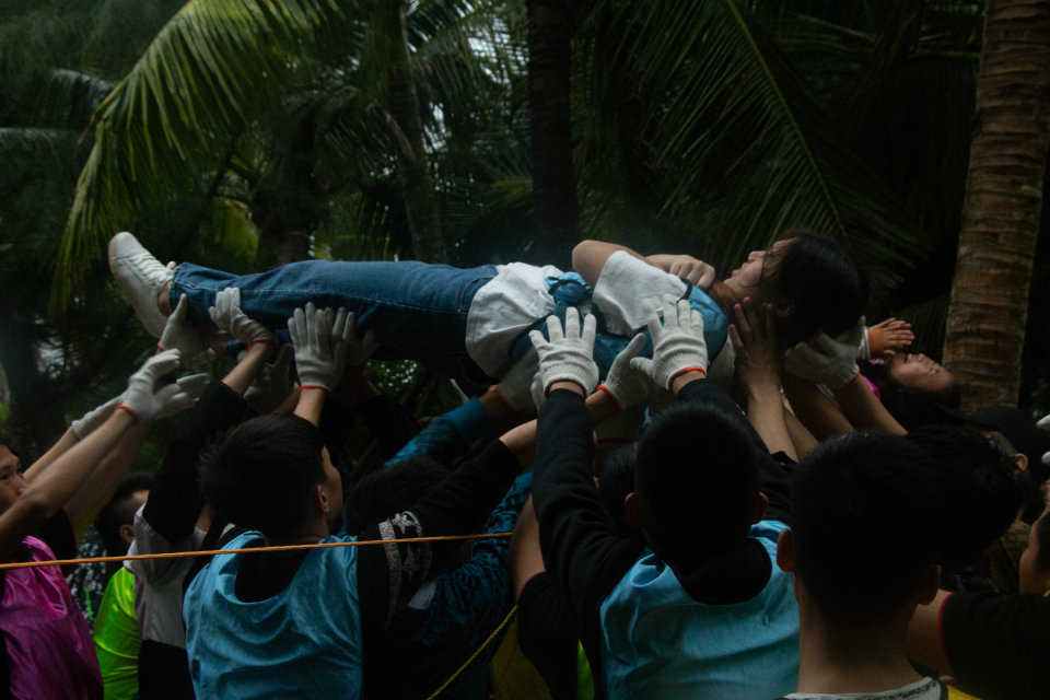 下午两点十五分,所有学员准时集合前往桂林洋十里金滩海滩进行户外实战演练,虽有风雨,但所有学员的情绪都非常高涨,毛毛虫接力大比拼后,所有学员都迅速活动开来,接下来每个小组表演了中午精心准备的团队才艺,惊心动魄的消防救援模拟、载歌载舞的团队展示赢得了现场的阵阵掌声,也吸引了众多路人前来观看。紧接着,唐老师对学员进行了心肺复苏的模拟操作,给大家灌输了极为重要的急救知识和急救意识。最后的实战项目考验的是团队配合的默契度和挑战不可能的勇气,所有人必须齐心协力穿越电网并从网的顶端跨越返回,整个过程不得触碰网线,否则前功尽弃,这项艰难的任务,靠一个人或几个人是无法完成的,只有团队密切配合,全力以赴才能做到。工程技术学院学生展现了他们应有的特质,最终他们不怕艰难险阻,突破了重围,顺利到达了理想的彼岸,但任务总会有人牺牲,留在最后的一名学员为团队付出了所有、承担了所有的责任,在他身上体现了当代大学生应有的担当,顺利通过的学员明白他们是怎么过去的,所有人甘愿一起承担责任,他们不会忘记那个默默付出的人,责任大家一起承担,这就是项目所带给我们的感受和启发。
