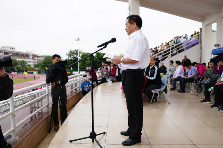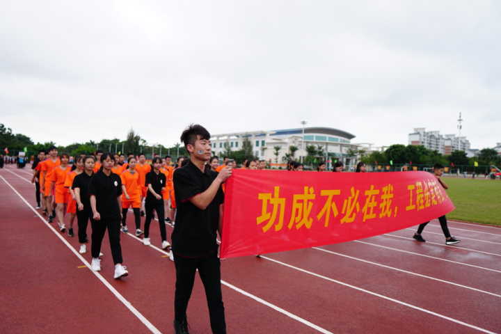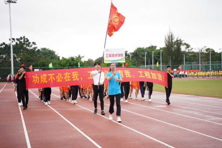 开幕仪式由陈修焕主持;我院运动员方队与校各方队依次入场接受运动会组委会的检阅。黄景贵代表学校发表致词;裁判员代表林春月老师,学生运动员代表、人文艺术学院洪浩同学分别上台宣誓,致力打造一场公平、公正、公开的体育盛会;张继友宣布,海南经贸职业技术学院第七届运动会正式开幕。