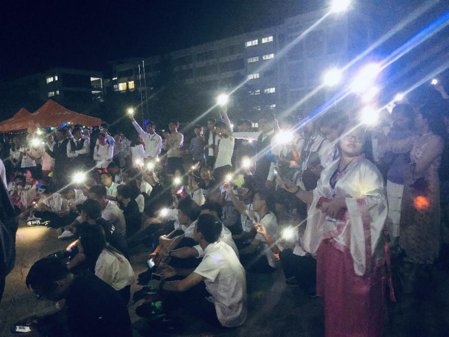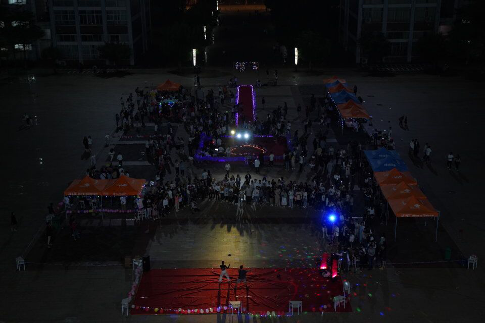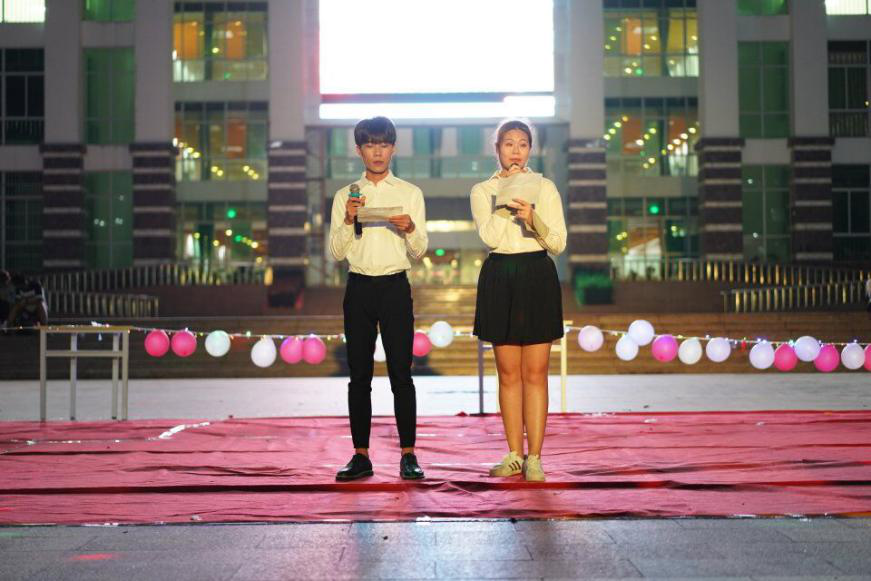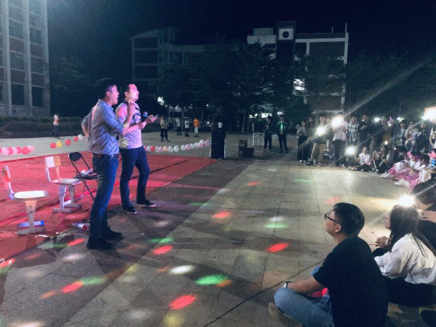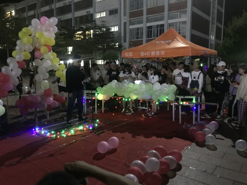 周末舞会在经贸广场上划分为六大区域,分别为唱歌区,跳舞区,素质拓展区,爱要大声说出来区、餐饮区和奖品区。整场互动游戏为主场,中间穿插两院工作人员精心准备的歌曲和舞蹈,主持人妙语连珠、节目表演美轮美奂、游戏环节互动充分,两院同学在阵阵欢声笑语中打成一片。我院学工办主任梁其钰老师,团学负责人唐图老师和17级辅导员周恺老师也参与了我们这次的活动。