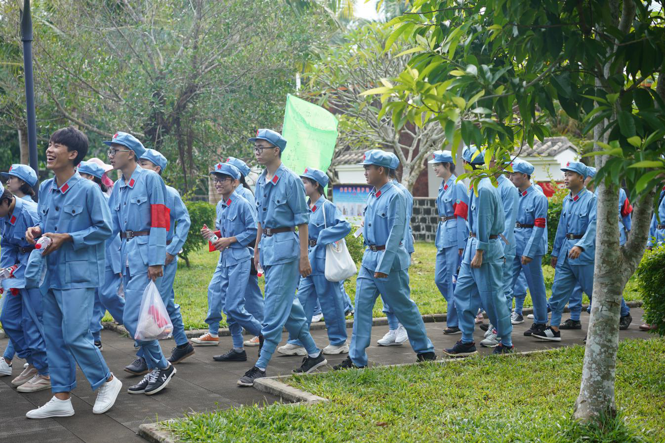 本次活动的亮点与特色在于穿戴统一的红军服、统一的红军帽、统一的红袖章前往革命圣地开展重走红军路活动。活动中党总支书记、副书记、学生支部书记、学工办主任、团总支负责人分别为学生上党课和讲革命故事,学生认真聆听党课和琼崖纵队二十三年红旗不倒革命故事。活动中举行了庄严的宣誓仪式,之后师生50人组成1个连队,编成4个战斗小组。战斗小组分别自制小组战旗、红军口号和编唱红军战歌,战斗小组还分别开展了各种实战演习演练活动,实战演习演练活动中培养了同学们团结协作克服困难努力奋进的团队精神。为了近距离体验红军生活,每个战斗小组队员亲自洗红军菜,亲自做红军饭,亲口品尝红军菜。