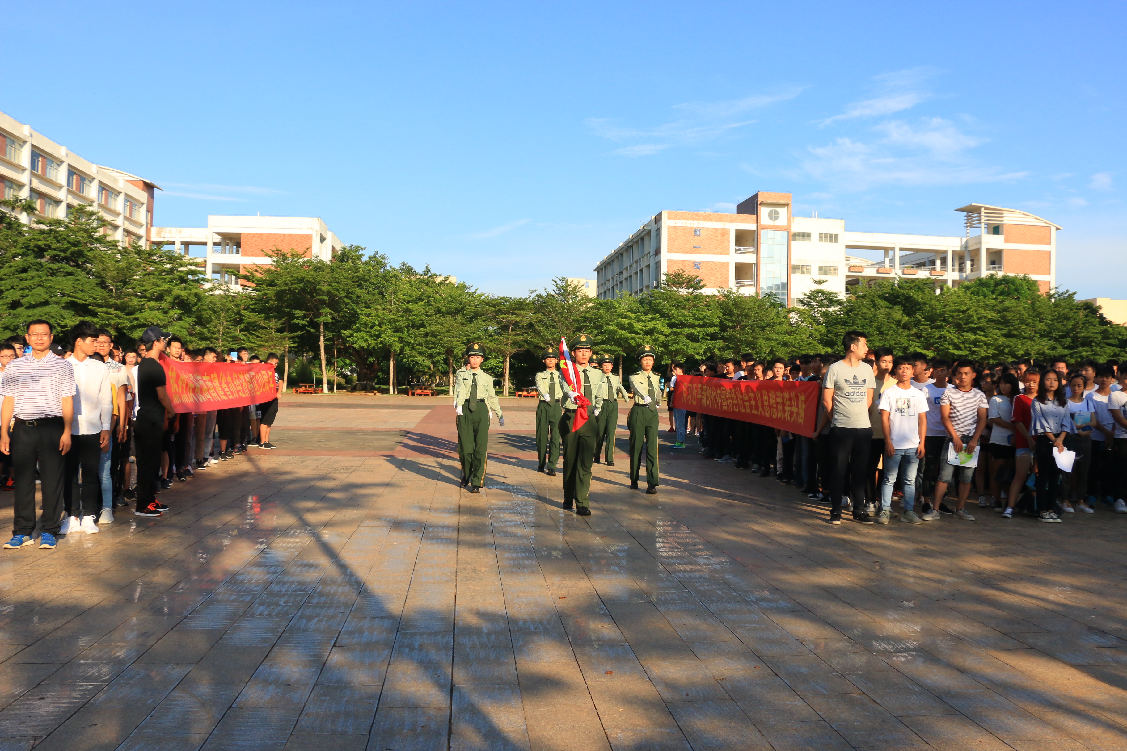 5月28日讯(工程技术学院报道)伴着晨光,迎着微风,工程技术学院“庆祝海南建省办经济特区30周年”升旗仪式在经贸广场举行。学院党总支书记陈继敏、学工办主任梁其钰、辅导员周恺、唐图、代晓明、徐超及2016、2017级全体学生出席仪式。