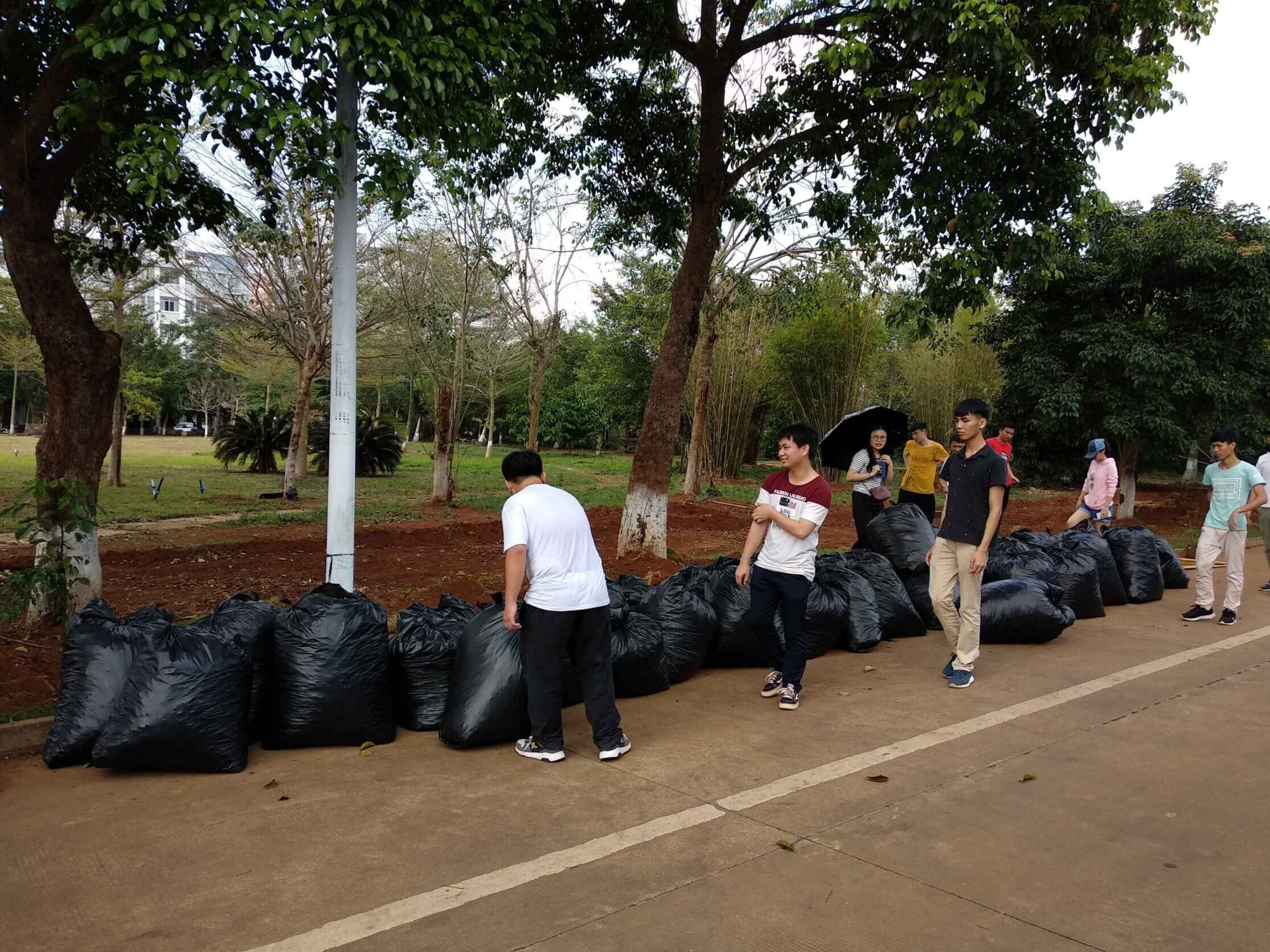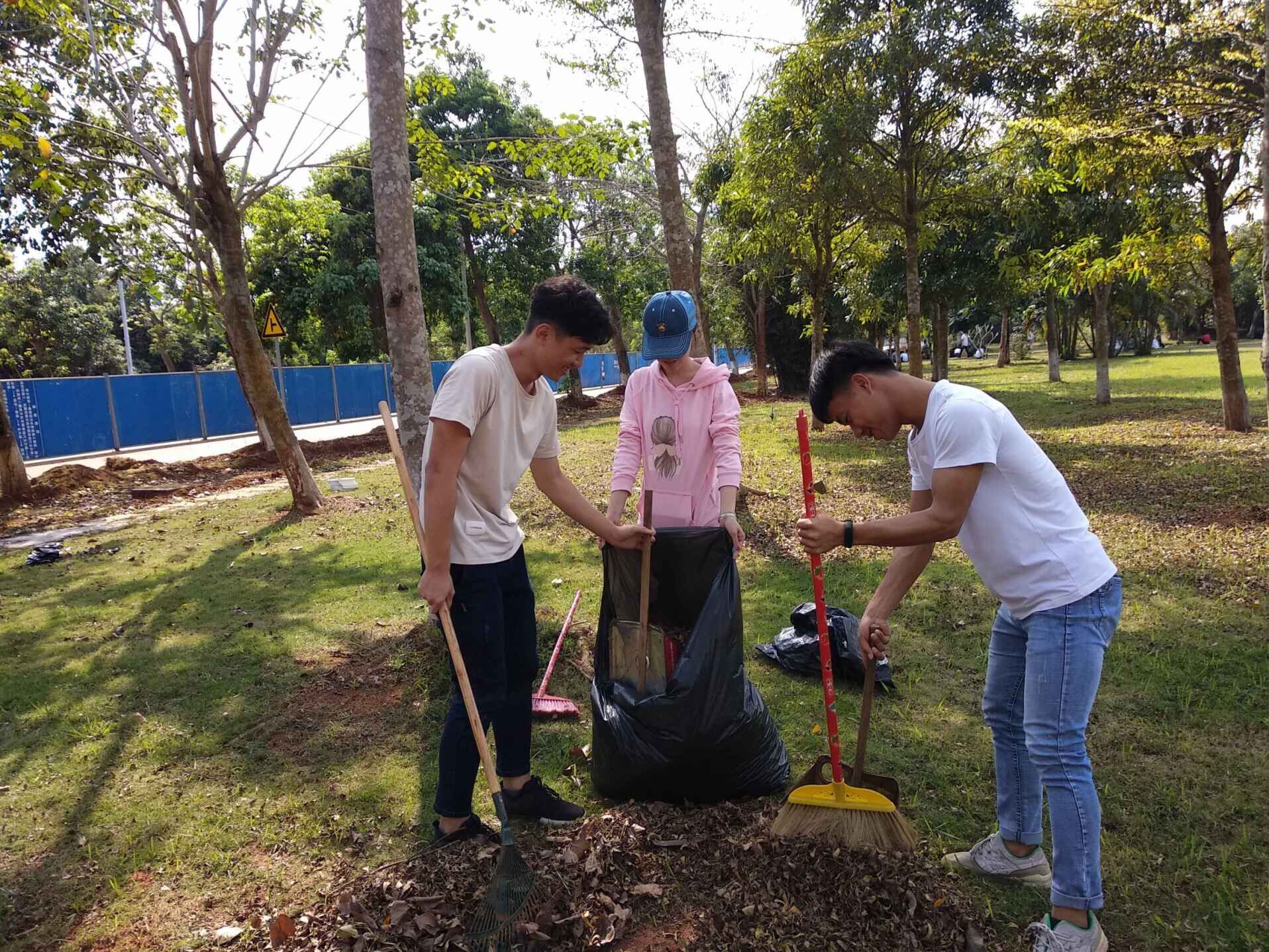 本次劳动竞赛主要是将我院的校内卫生责任区内草坪的杂草、落叶、烟头等垃圾进行及时清理,辅导员周恺按照各班人数进行了责任区域划分,并将劳动竞赛的要求和注意事项进行了说明,同学们便立即开始了行动。在各班班长的带领下,大家都领取了各自的劳动工具,分工合理,目的明确,活动开展的秩序井然。女生主要负责帮忙拎袋子,男生利用耙子、簸箕等工具,先将落叶与垃圾清扫至一堆,最后将垃圾袋装满后捆好放置在指定区域。活动过程中,他们互相帮助,不怕苦,不怕累,在全体同学们两个半小时的辛苦努力下,卫生责任区域焕然一新。