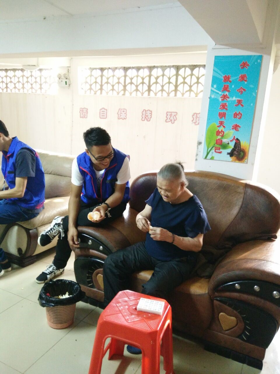 志愿者们在相关负责人的带领下,把携带的一些水果、日常生活用品送到了琼山敬老院。据悉,凤翔敬老院收留了近10名孤寡老人,老人们是有残疾的,精神们就开始和老人拉家常,从自我介绍开始,大家或蹲在老人身边,一边跟老人谈心,一边为老人捶背。气氛十分融洽。