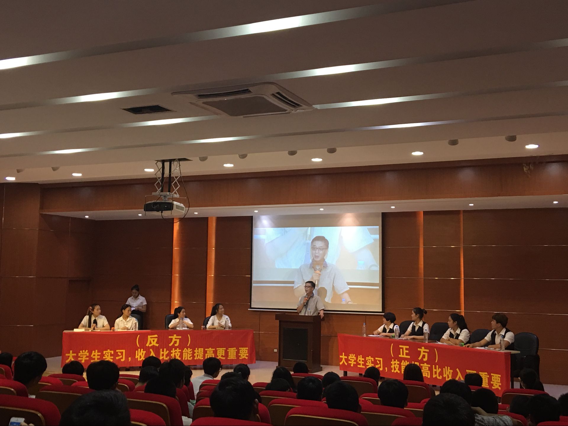 5月17日讯(工程技术学院 岳将红报道) 为了丰富同学们的课余生活,提升文学修养,调动同学们的积极性,5月16日晚学校于学术交流中心举行了第九届经贸大学生辩论赛预赛。其中预赛参赛的学院一共有六个,两两一组分正反方比赛,比赛共三场。第三场比赛中,工程技术学院作为正方迎战反方国际教育学院代表队。本场比赛的辩题为,大学生实习技能提高与收入哪个更重要。
