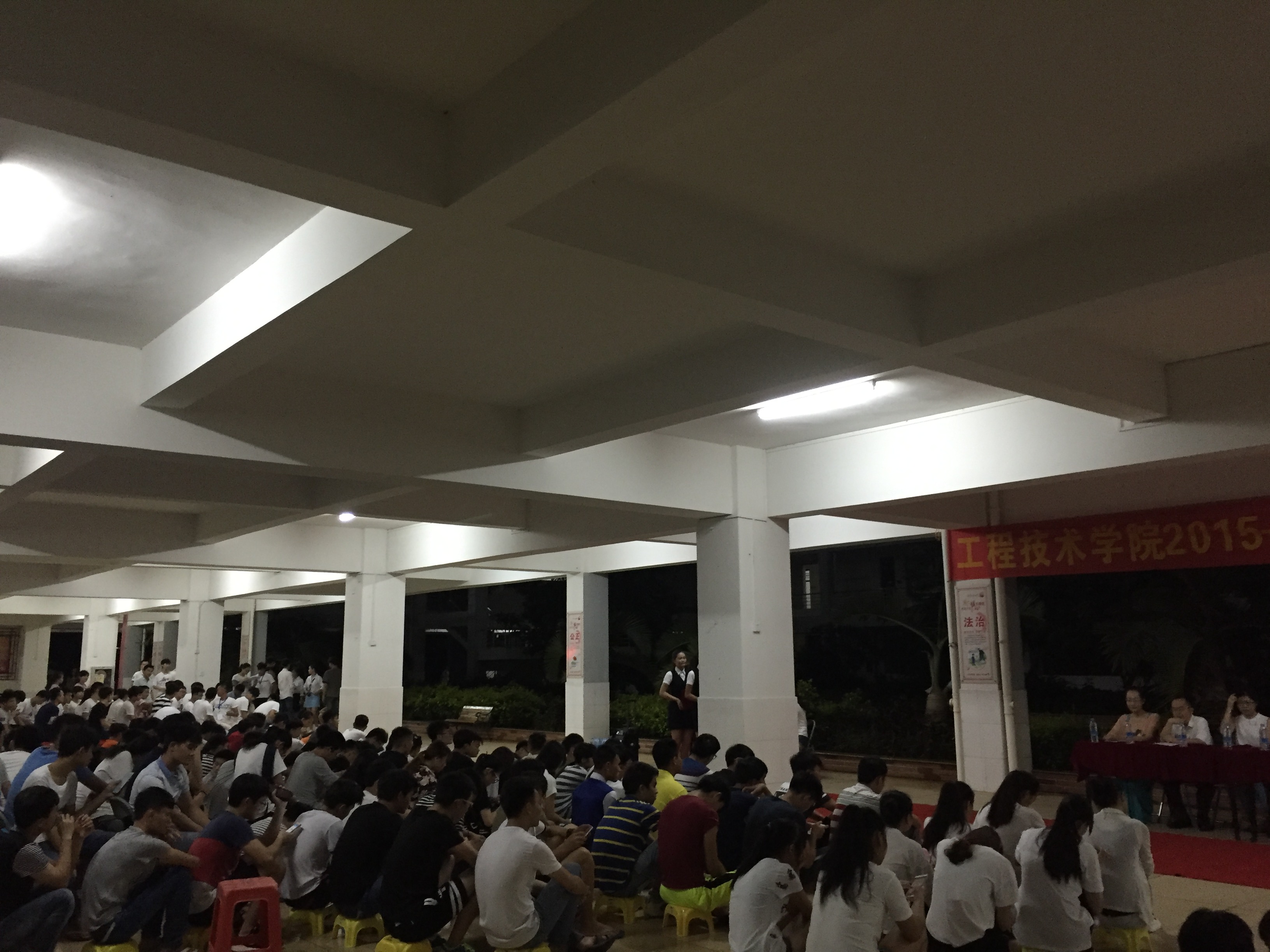 5月31日讯(工程技术学院 侯英之报道) 时光飞逝,岁月如梭,转眼间一年的时光已然过去。伴着优雅且欢快的细雨,工程技术学院2015-2016年度总结暨表彰大会于2016年5月30日晚7时30分在二栋教学楼下隆重召开。出席本次大会的主要有工程技术学院副院长王忠老师、党支部书记陈继敏书记、院办公室副主任韩昌豪老师、院教务办主任卜毅男老师、团总支书记梁其钰老师、团学负责人代晓明老师、辅导员肖洁老师、电商负责人单继周老师、团学青成员及全体大一新生。本次大会由袁野、陈悄悄主持。