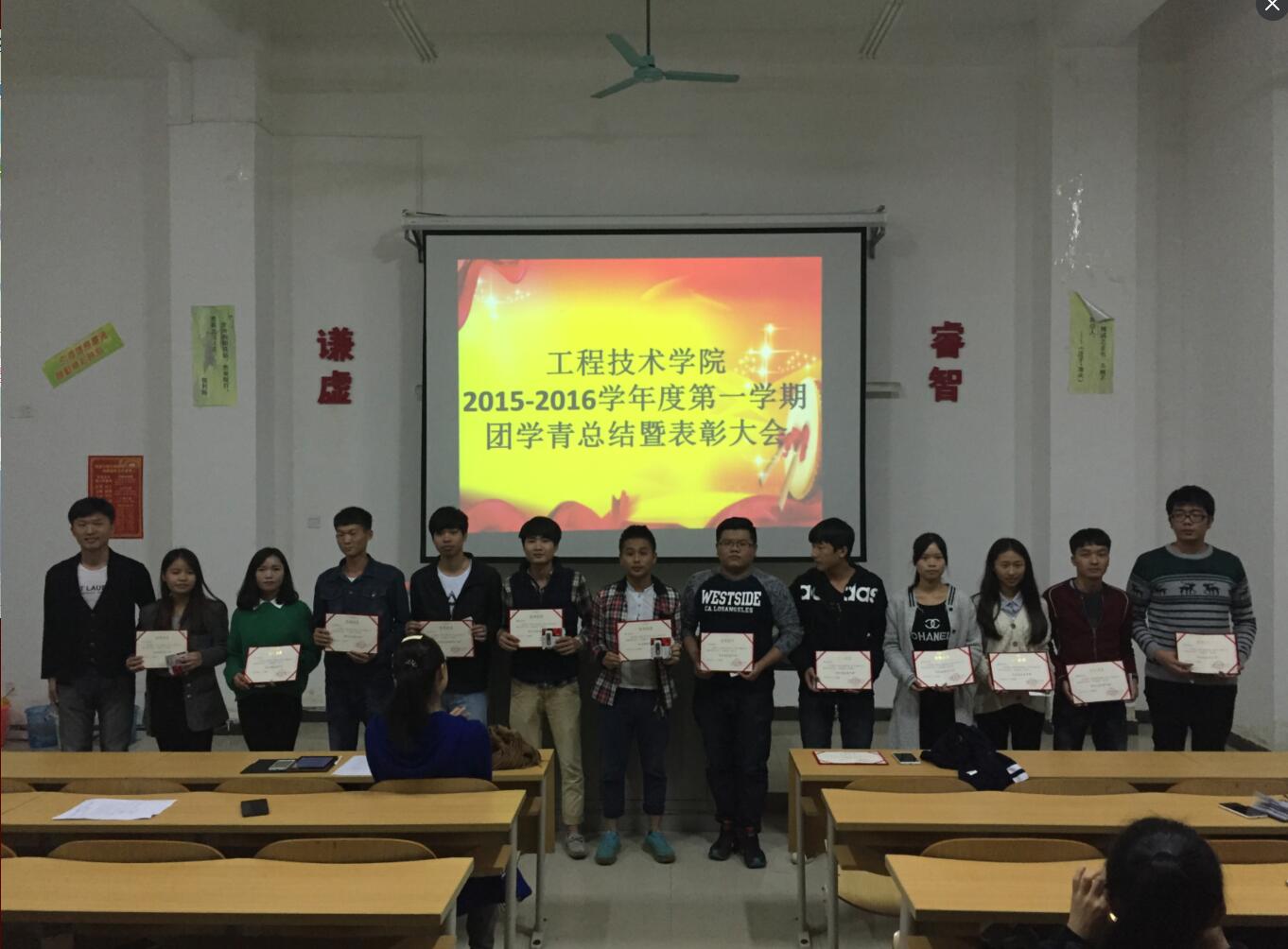 2015年12月27日讯(工程技术学院 李京京报道)12月27日晚8:00整在二栋教学楼526教室举行了工程技术学院2015-2016年度第一学期团学青总结暨表彰大会,参加本次大会的主要有工程技术学院团总支书记梁其钰老师、团学负责人代晓明老师、工程技术学院团学干部以及团学干事成员。大会在陈悄悄的开场白下拉开了帷幕。