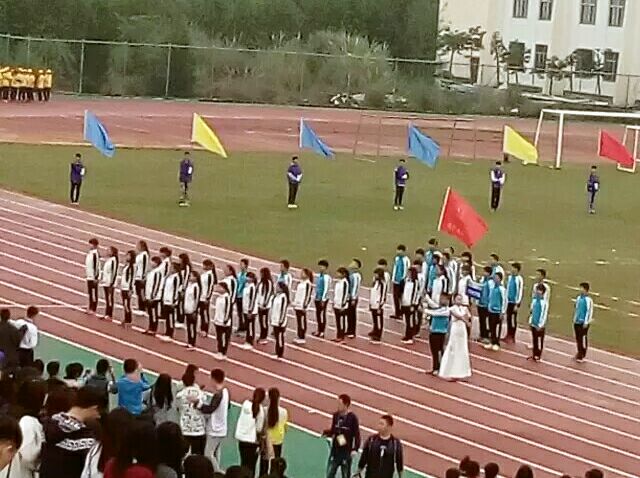 接着由运动员代表和裁判员代表进行宣誓,操场的氛围拉到了高潮,所有的焦点拉向了国旗,全体起立,开始升国旗奏国歌,交响乐团奏响了人心,奏响了斗志,开幕式也随之走到了尾声。然后为期两天的各项运动赛事也正式开始。