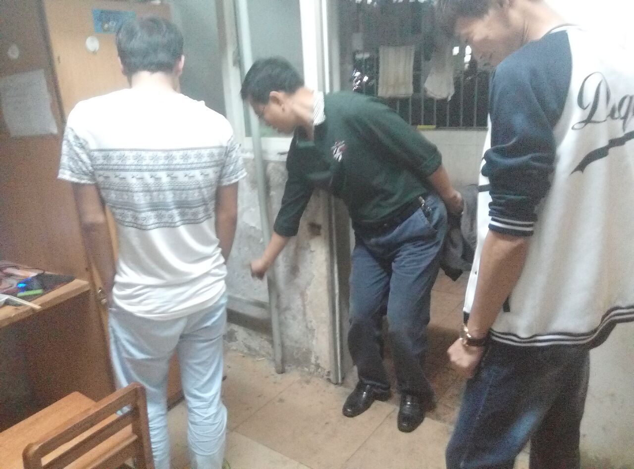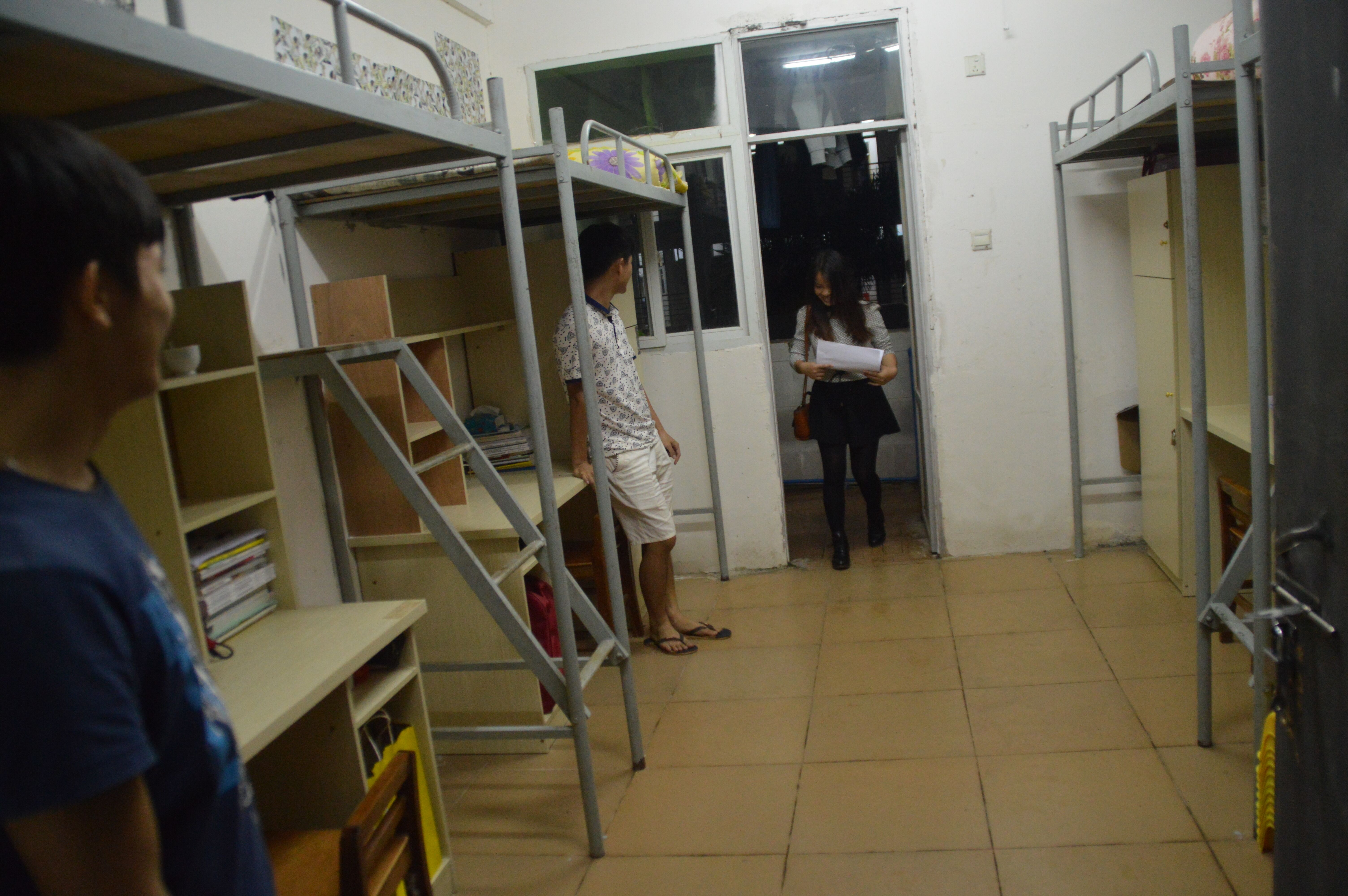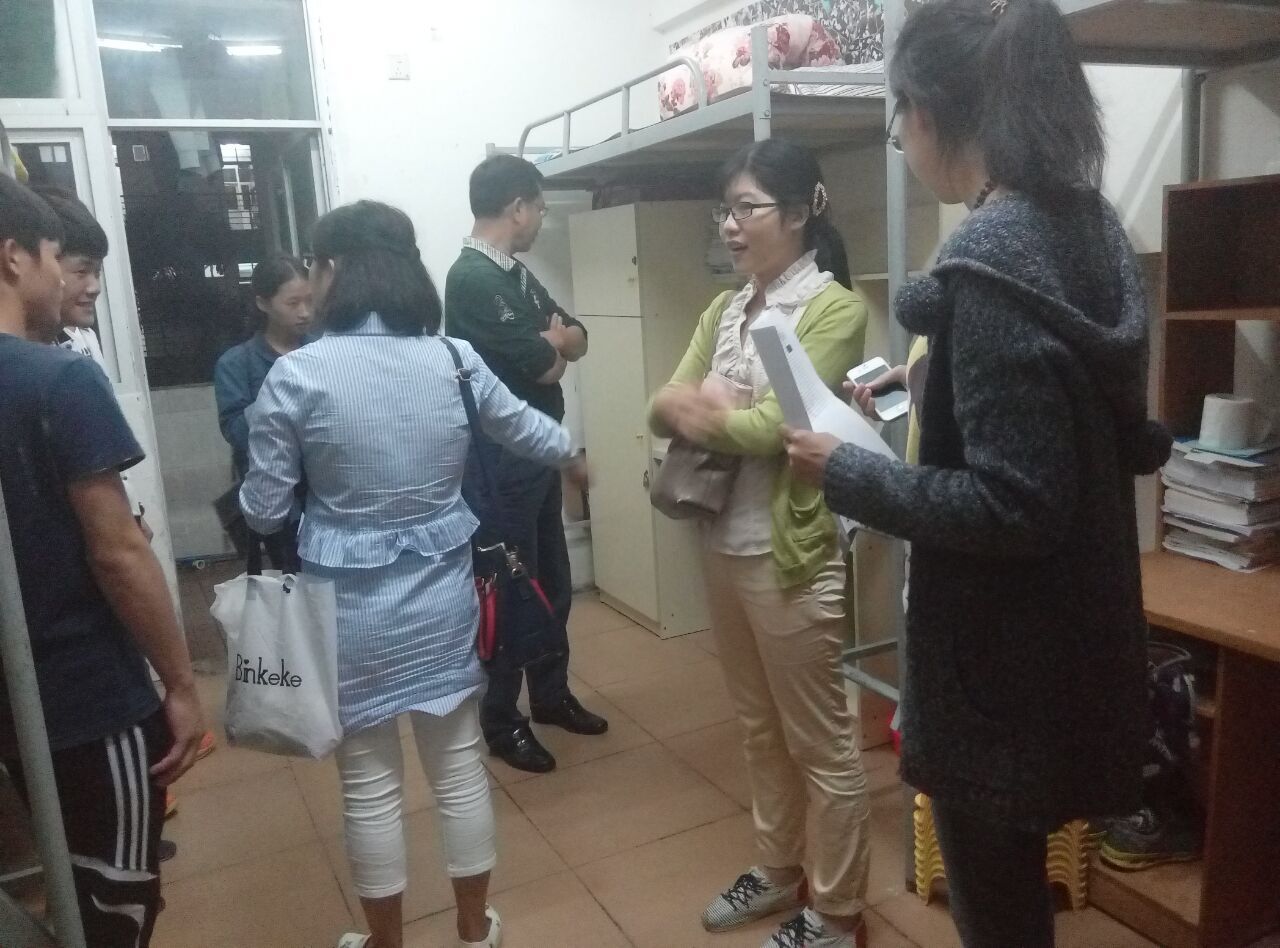 所有成员在书记和各个老师的带领下,分四组同时展开,一组查11栋女生宿舍、一组查10栋C区男生宿舍、一组查7栋男生宿舍,最后一组专门针对脏乱差的宿舍进行专项检查。检查主要针对门窗电风扇有无灰尘、网线电线乱拉、洗脸台是否有青苔、室内有无烟头、蚊帐吊床是否收起、被傉衣服是否整齐,清洁工具是否放在防护栏上等。检查中还从正面反面进行拍照,旨为督促同学们向优秀宿舍学习,争创文明宿舍。检查过程中同学们认真负责,宿舍成员们也积极配合。