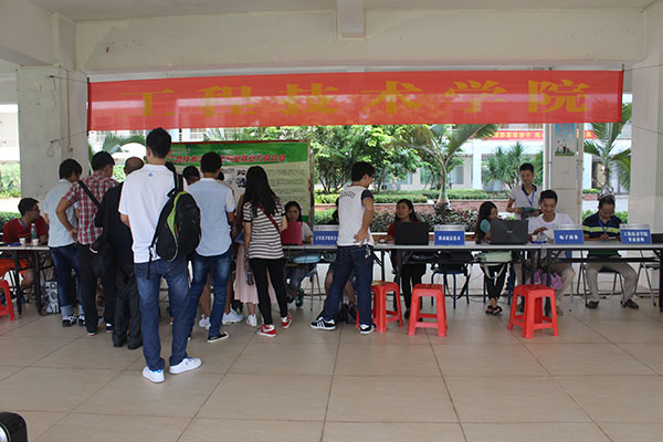 接站的车辆一驶进校区,他们就立刻行动起来,接过新生手中沉重的行李放在接待点,并热情的给家长们搬凳子提供休息、倒水。我们可以看到热情的工程技术学院学长学姐们带着学弟学妹穿梭于缴费、报到注册、领取军训服、领取一卡通、宿舍等新生办理手续的各个地方。途中,他们一边帮学弟学妹们提着沉重的行囊;一边不忘给新生介绍学校周边的环境,以学长学姐的身份给新生提供一些生活、学习等方面的建议,微笑并热心地解答每一位新生的疑难问题,接完一批新生送到学生公寓宿舍后,他们抹一把脸上的汗水,赶忙又返回接待站点去迎接陆续不断到来的新生。他们的热情服务得到了新生及其家长们的一致好评。