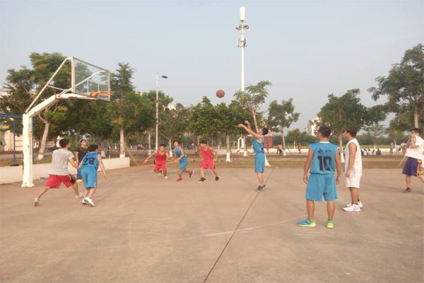 在班级同学的加油声中,各队球员们准备就绪,抢球运球配合的非常精妙,以娴熟的技术拉开着比分差。落分班级的球员们顽强拼搏,奋起追击,风驰电掣,迎难而上。随着裁判的一声哨响第一节结束了。双方球员在场下商讨战术。场边的啦啦对口号越喊越响,让本班球员增强了自信心。比赛紧张而激烈地进行,场面异常火爆。