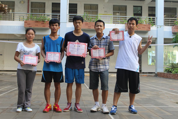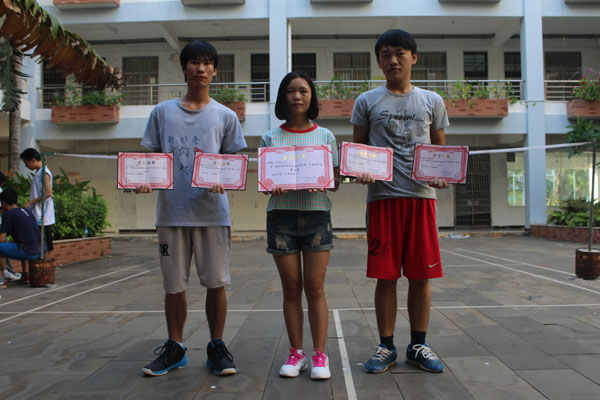经过系部决定,为参加此次羽毛球大赛的男子个人赛、女子个人赛前三名、团体赛的前三名颁奖。他们分别是:男子个人赛第一名14网络一班吴小可、第二名14电商一班陈昌贵、第三名13电商一班韩启泰;女子个人赛第一名13电商二班丘玲、第二名14电商一班王燕霞、第三名14网络一班陈春英;团体赛第一名14网络一班、第二名14电商一班、第三名14网络二班。