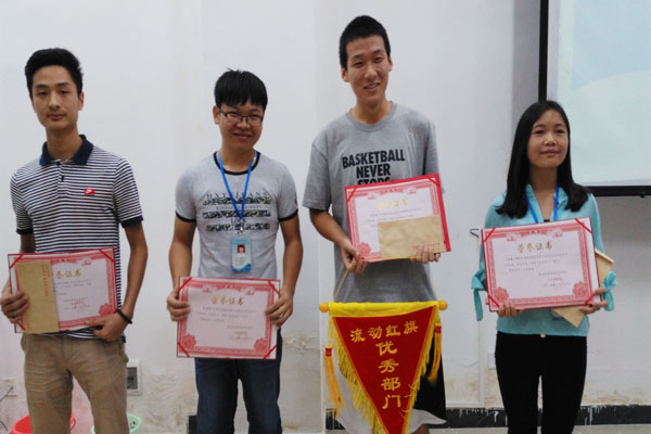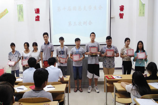 会议首先,学生会副主席罗野对上一学期学生会工作进行了总结,副主席还以自身经历为例告诉同学们应该具备自信,主动与人交谈,建立良好人际关系;接着,由学生会副书记汪国斌对学习、纪律和团学方面作了强调说明;然后,根据上学期各部门、部员的表现情况评出了4个“优秀部门”以及12个“优秀学生会先进个体”,其中由秘书长丁燕琴宣布了其获奖名单,并由主席魏锴为 “优秀部门”颁发证书奖金,由副主席罗野、黄丹,副书记汪国斌为 “优秀学生会先进个体”颁发了证书奖品。