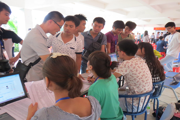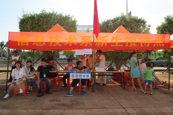 我系迎新者遍及在公交车站点、学校大门口、二栋楼下等地摆出服务点,为新生注册提供便利。学长学姐们带领新生进行资格审核、缴费、系部报道、购买军训服、办理一卡通,最后再把新生带到学生公寓宿舍。引导路途中,积极分子们冒着炎炎烈日帮忙复印各种需要的文件,帮忙提行李(特别是行李多的家长学生以及弱小的女生等)直至宿舍里面,当然还包括向他们介绍学校的一些概况,以及所学专业的一些情况,其中还耐心解答着新生和家长的各种问题,尽心尽力、尽职尽责。