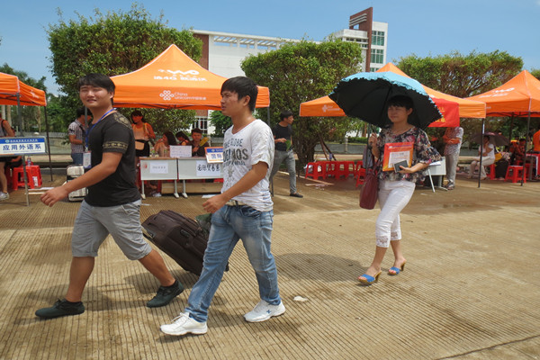 迎新不是所想象得那么简单,更是在考验人的体力以及心理素质。迎新过程中,天气颇显异常,一会儿阳光灿烂一会儿便大雨倾盆,这给他们的工作也带来了很多的不便,但是即便如此,大家都没有退缩,仍然坚守在自己的工作岗位上。许多人员因此身上被淋湿,有的连中饭都没来得及去吃,他们的热情让新生和家长倍感温暖。