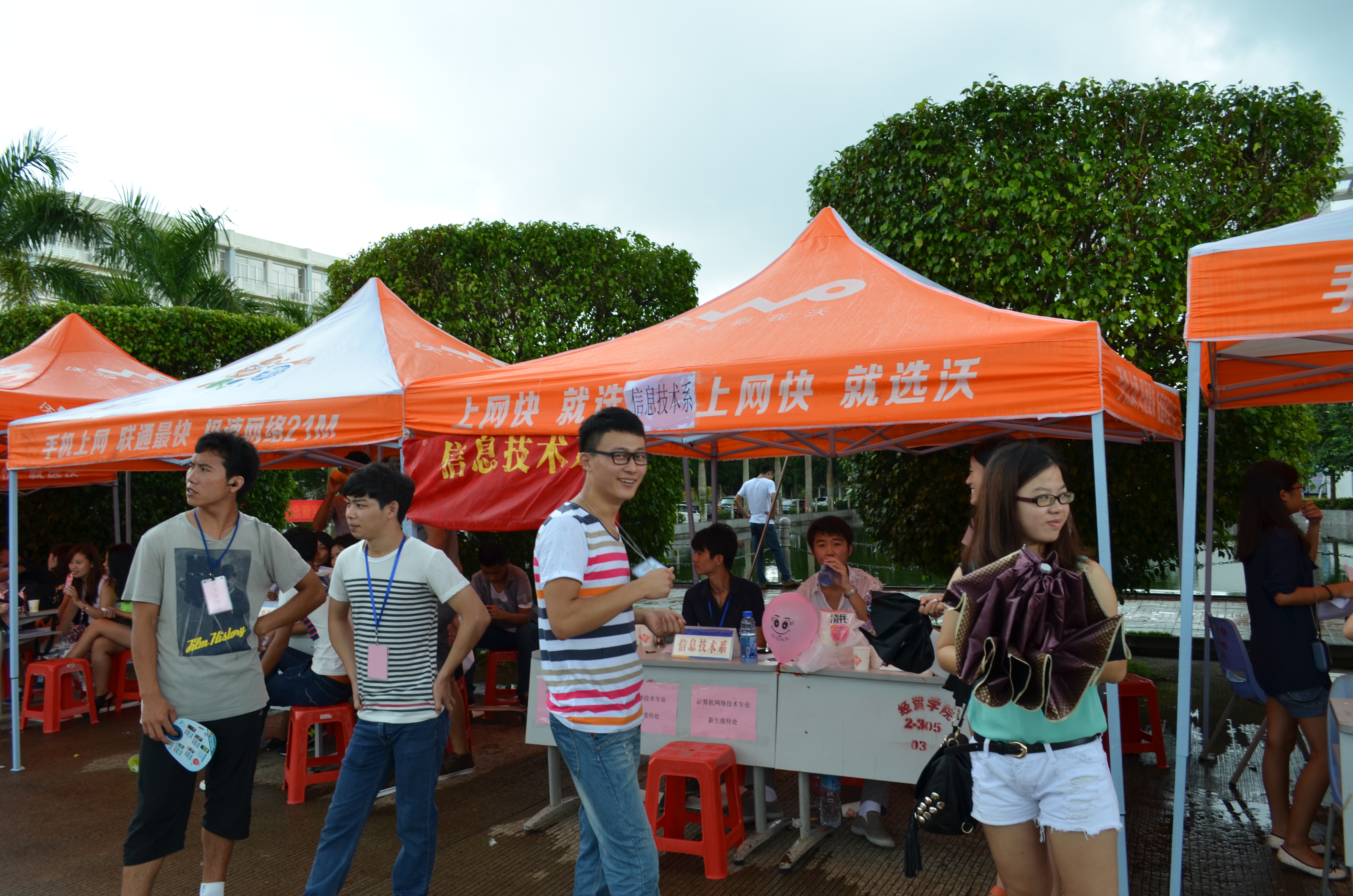 各项工作在怡人的天气里有条不紊地顺利进行,迎新的第一天信息技术系已接待几十位新生和新生家长。