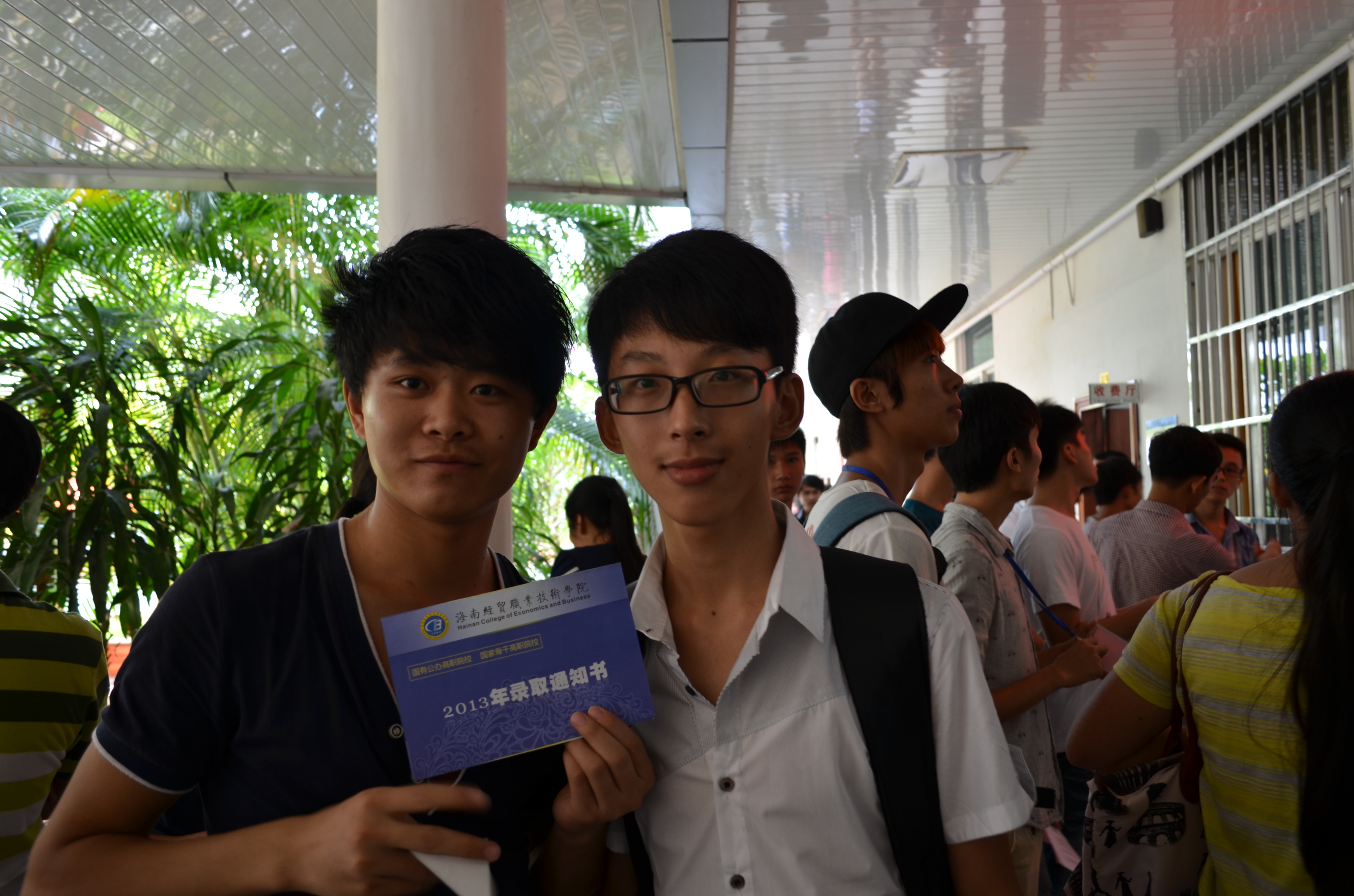 “请让新生轻松开始大学生活”。在新生完成所有的报到手续,让新生在报到完成之后,卸下行囊交给迎新志愿者,放松心情去欣赏美丽的海经贸校园。